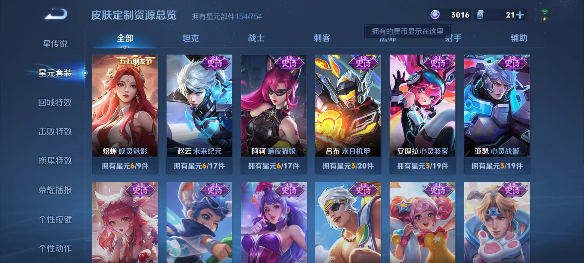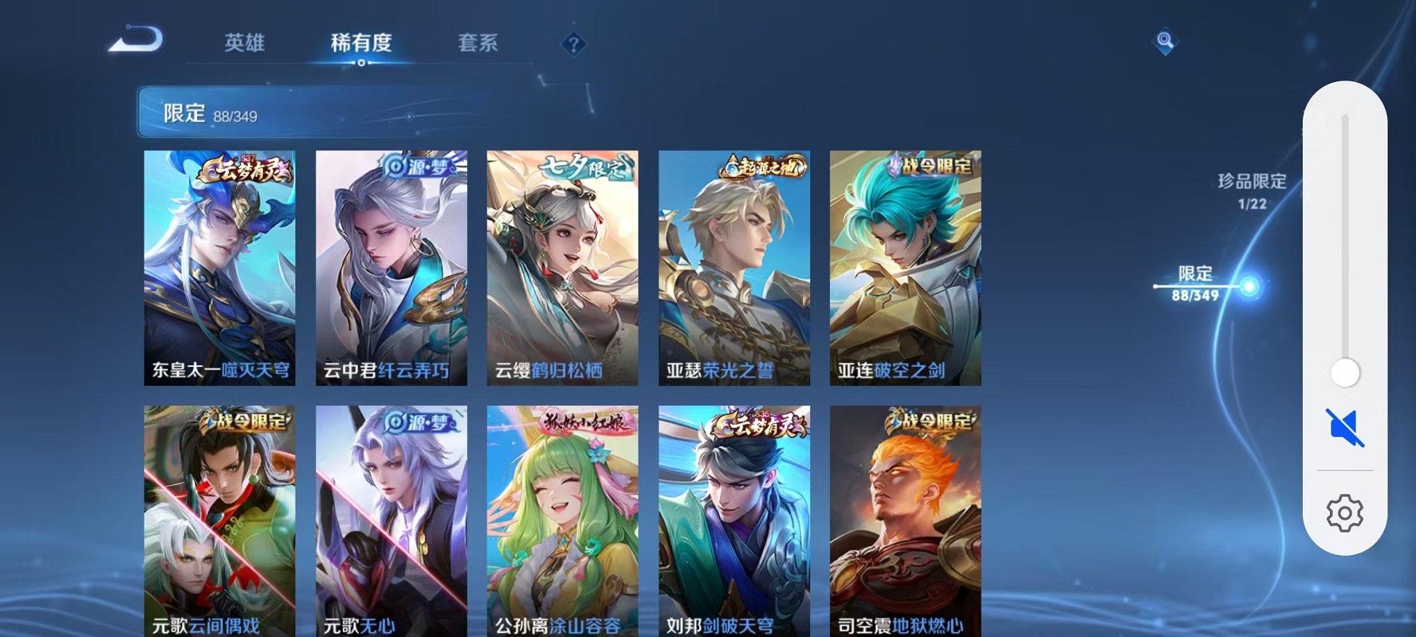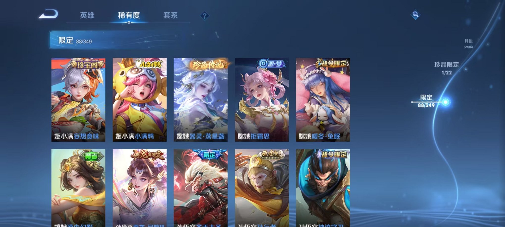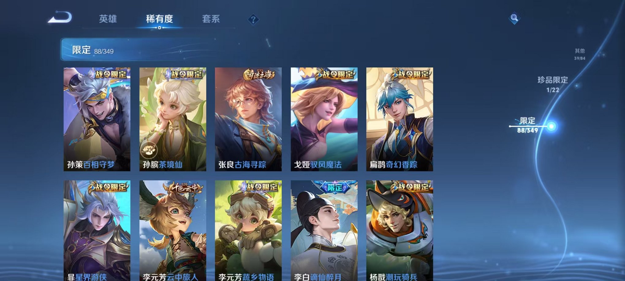 安卓QQ 皮肤275 英雄126 典藏1 珍品传说1 传说10 其他皮肤97 绝世王者-
