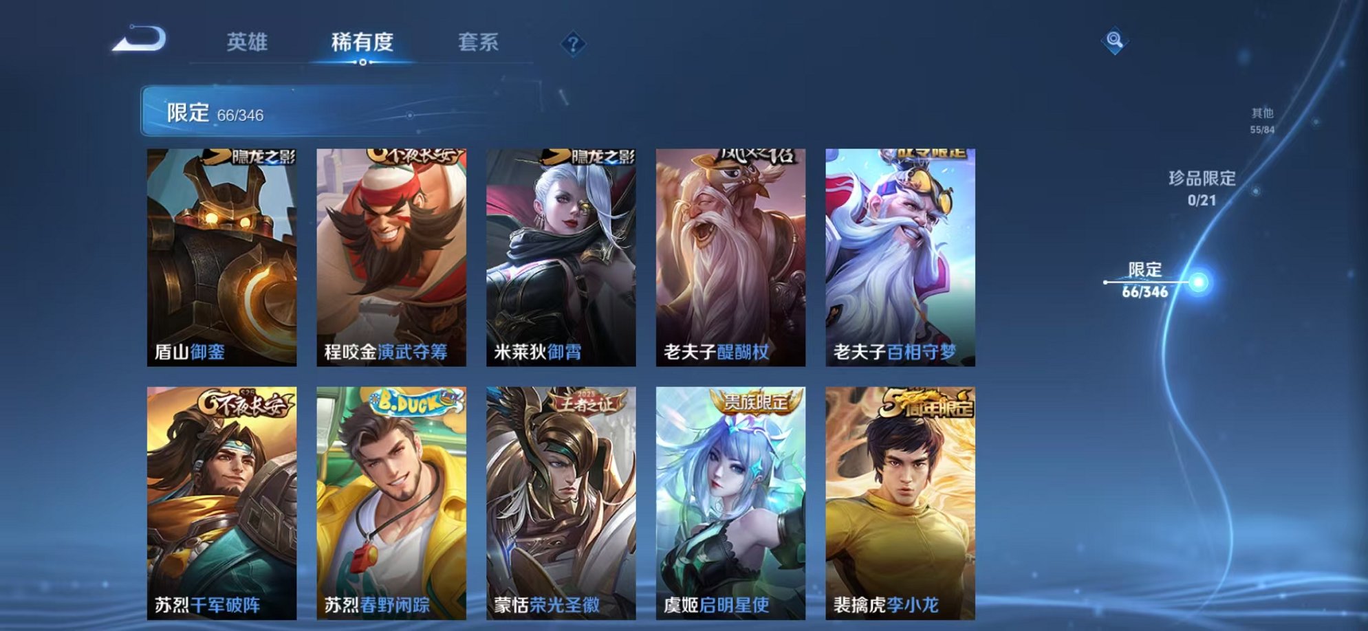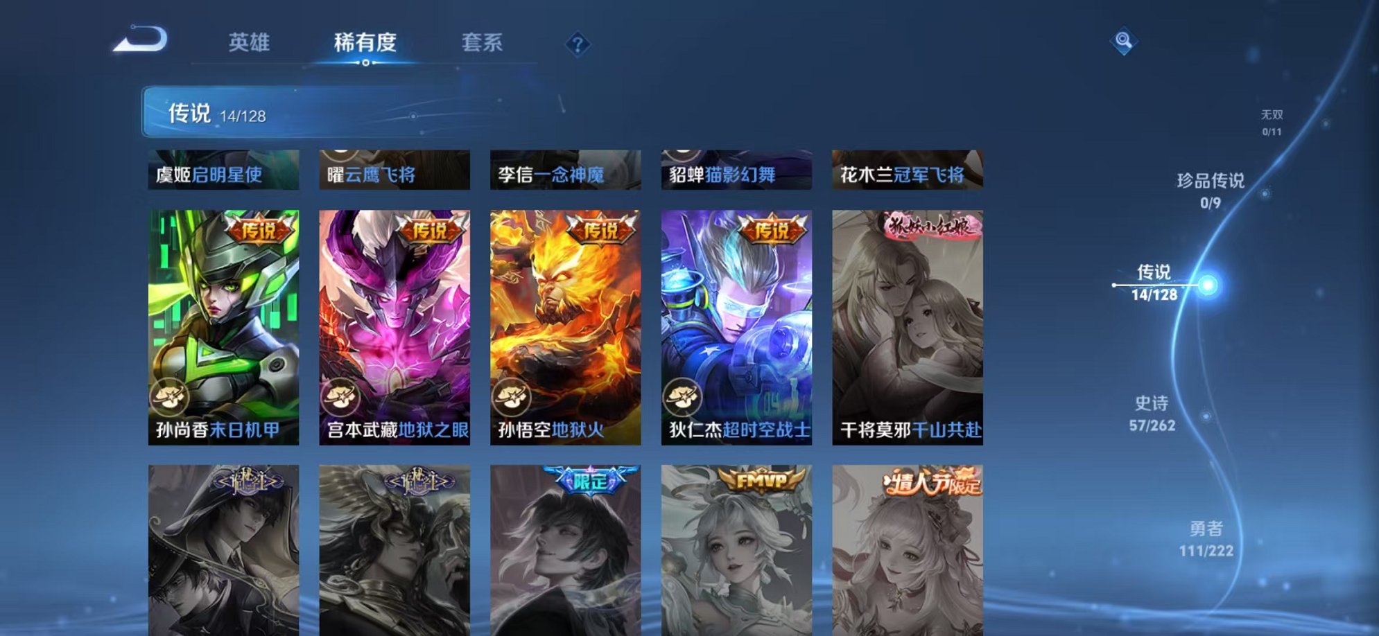 安卓QQ 皮肤238 英雄123 典藏1 传说14 其他皮肤88 至尊星耀-