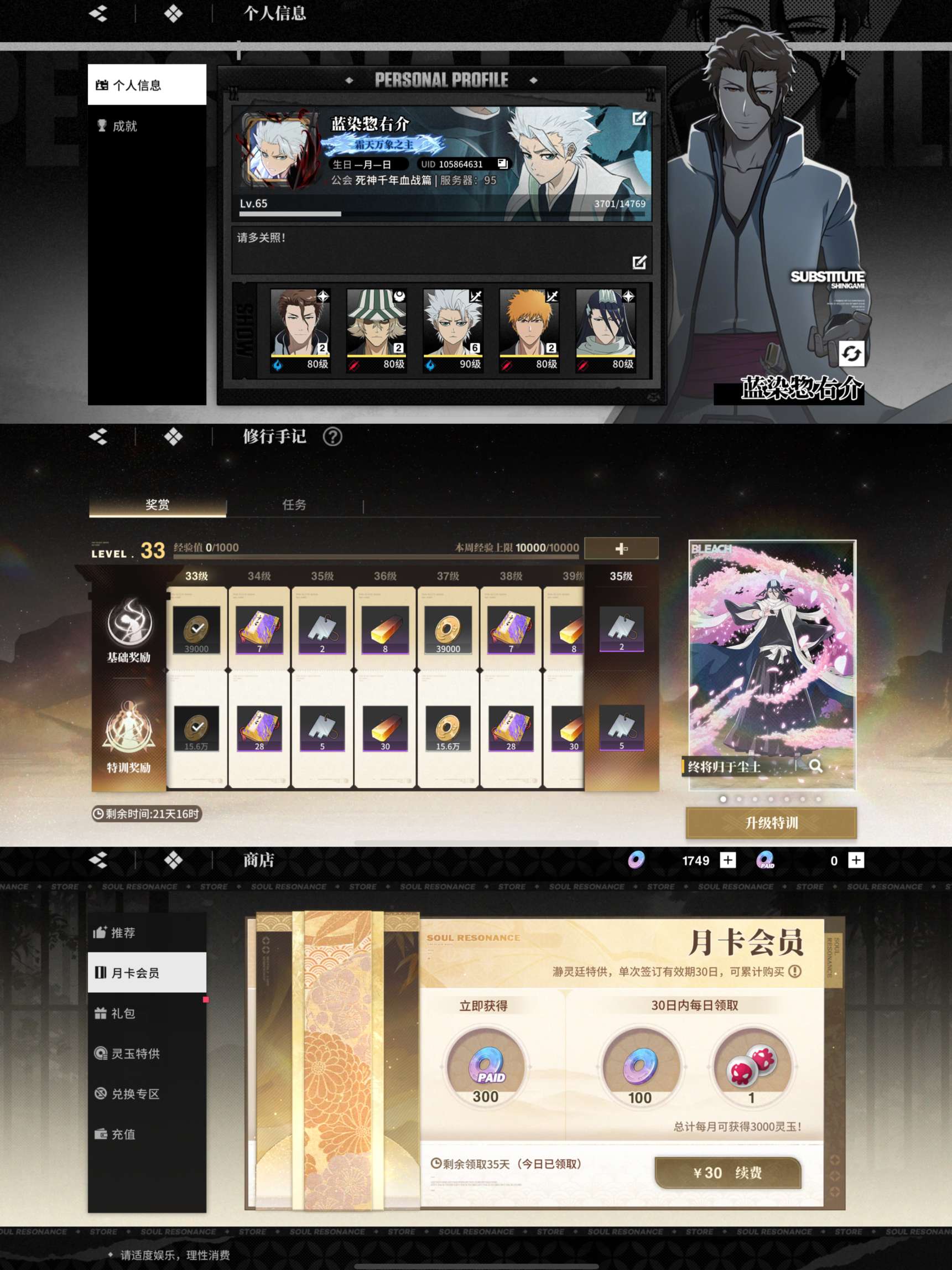 655小白211蓝染213一护232店长013白哉101命光头Sr角色基本全满命满武 6.3
