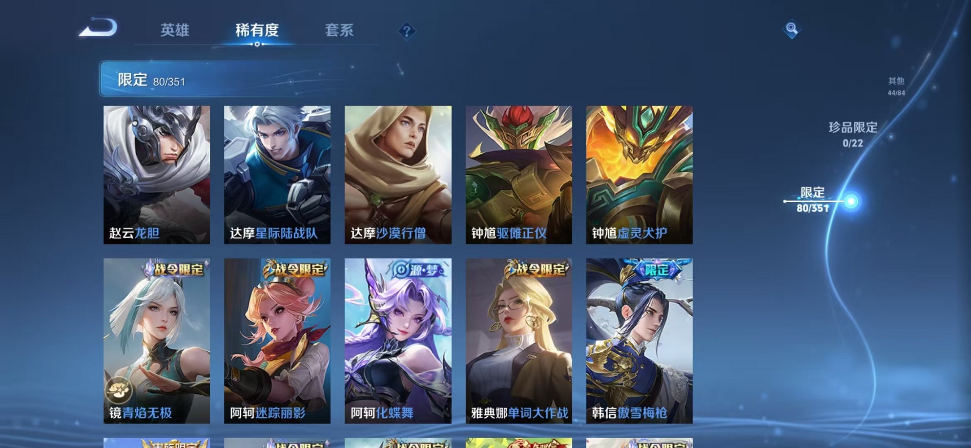 安卓QQ 皮肤250 英雄126 典藏1 传说8 其他皮肤95 永恒钻石-