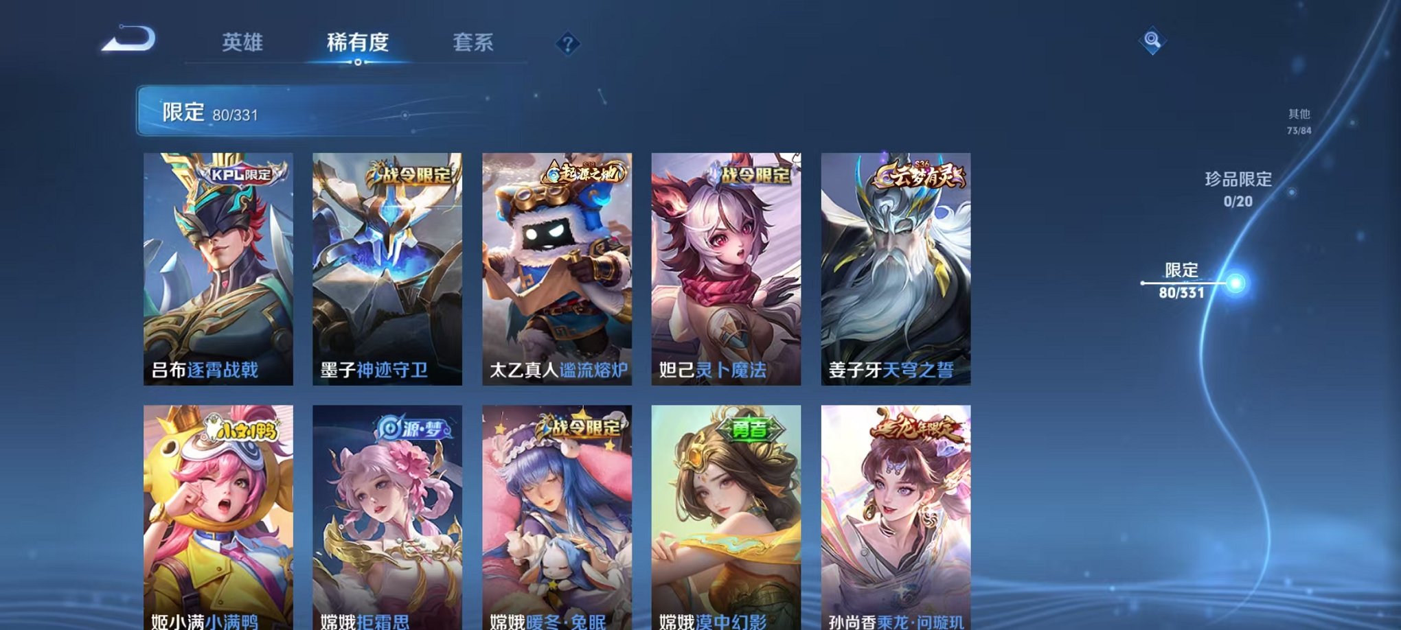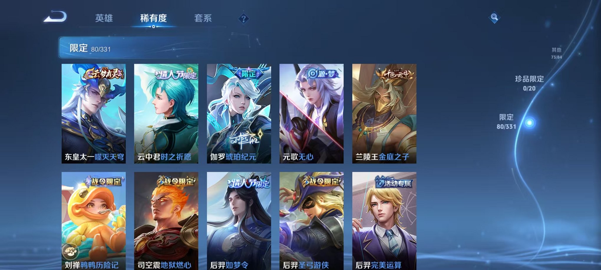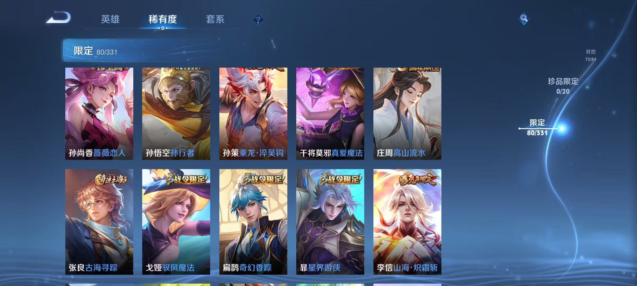 安卓QQ 皮肤283 英雄125 典藏1 传说7 其他皮肤84 至尊星耀-