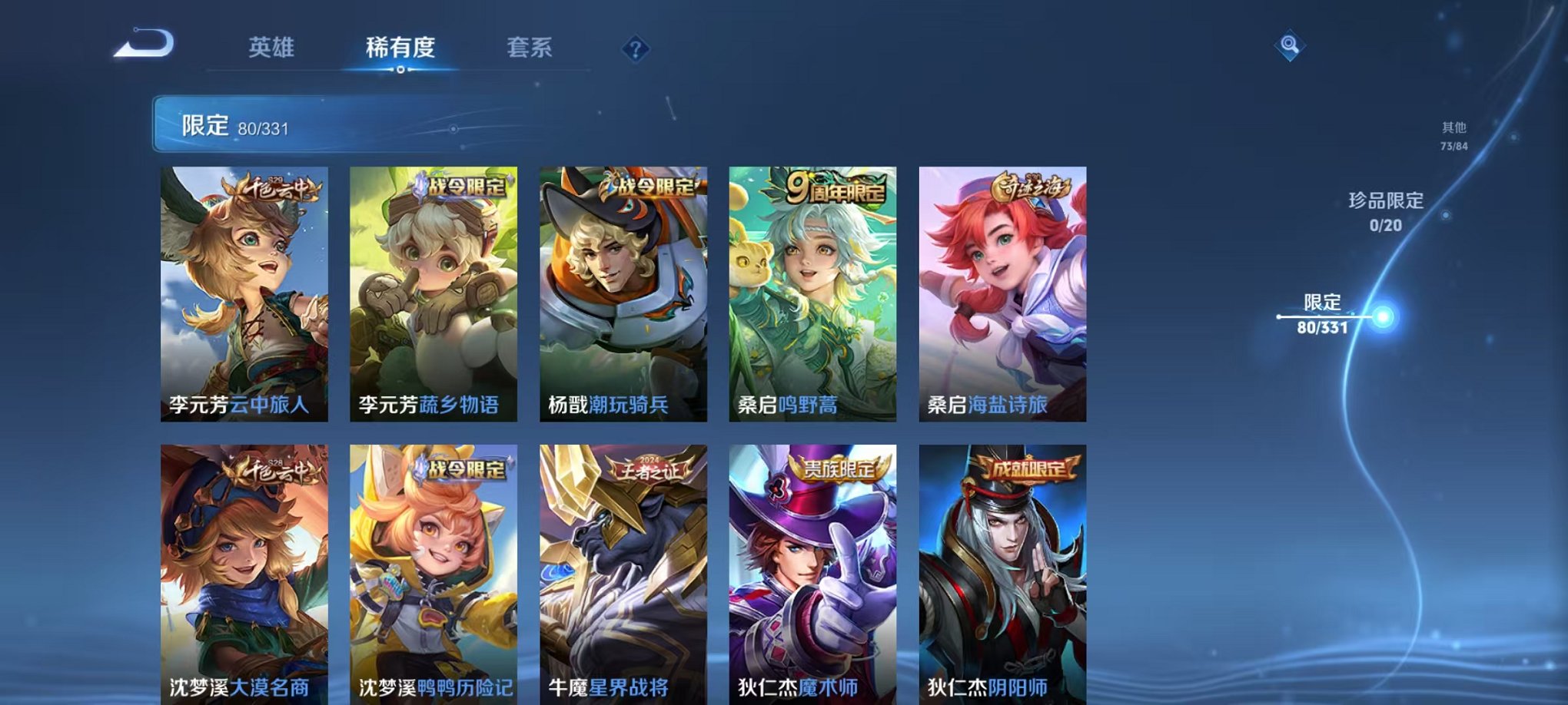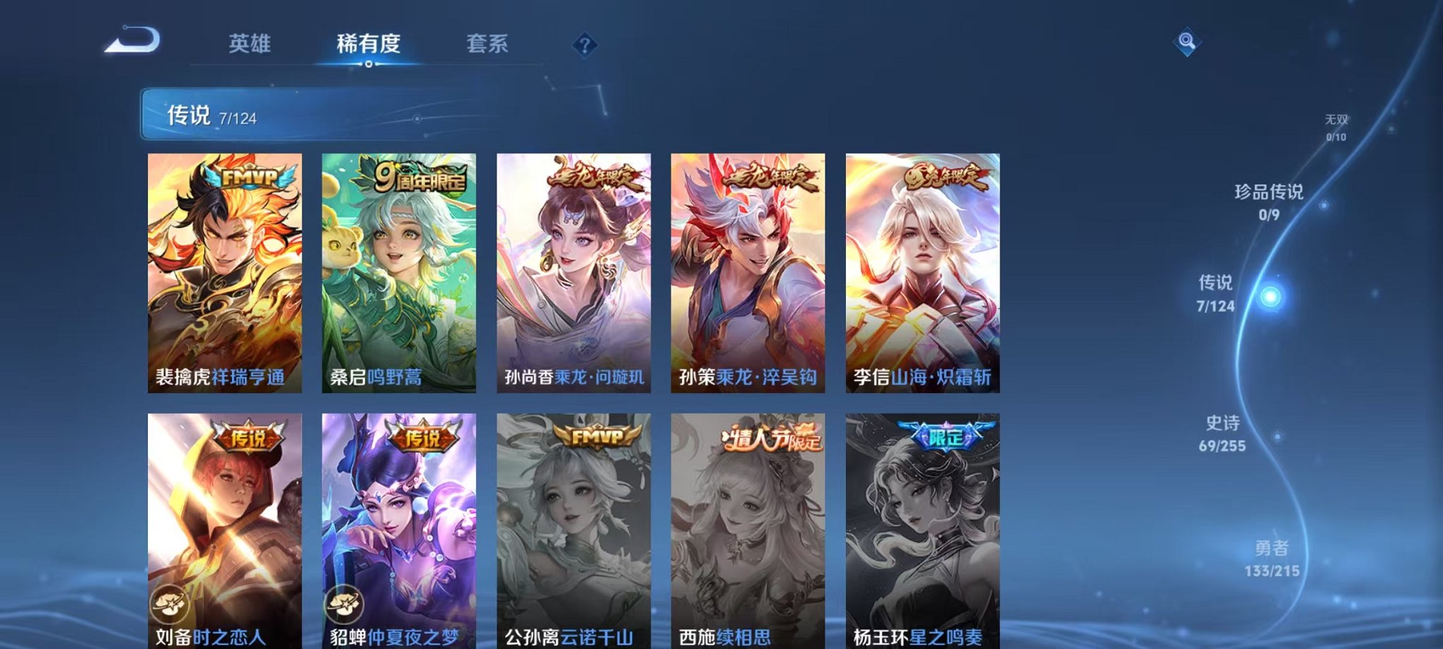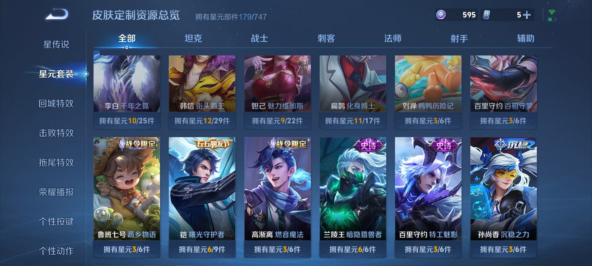 安卓QQ 皮肤283 英雄125 典藏1 传说7 其他皮肤84 至尊星耀-