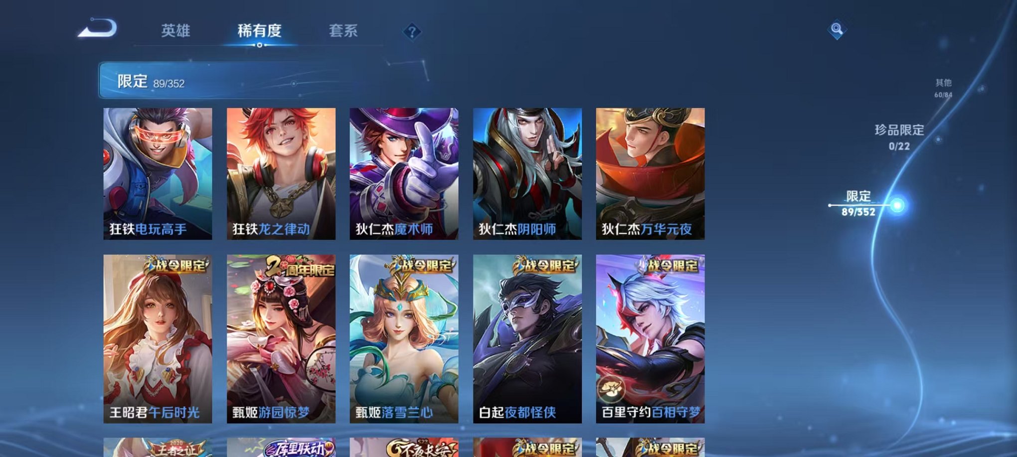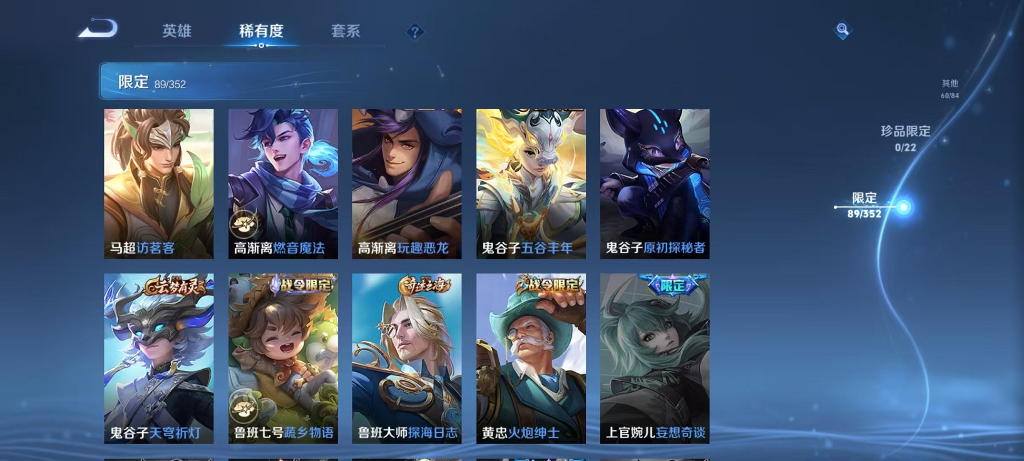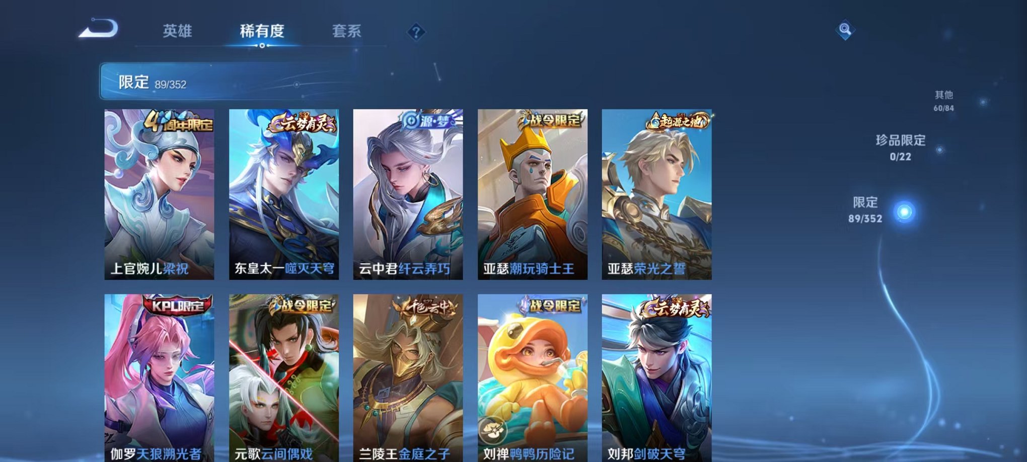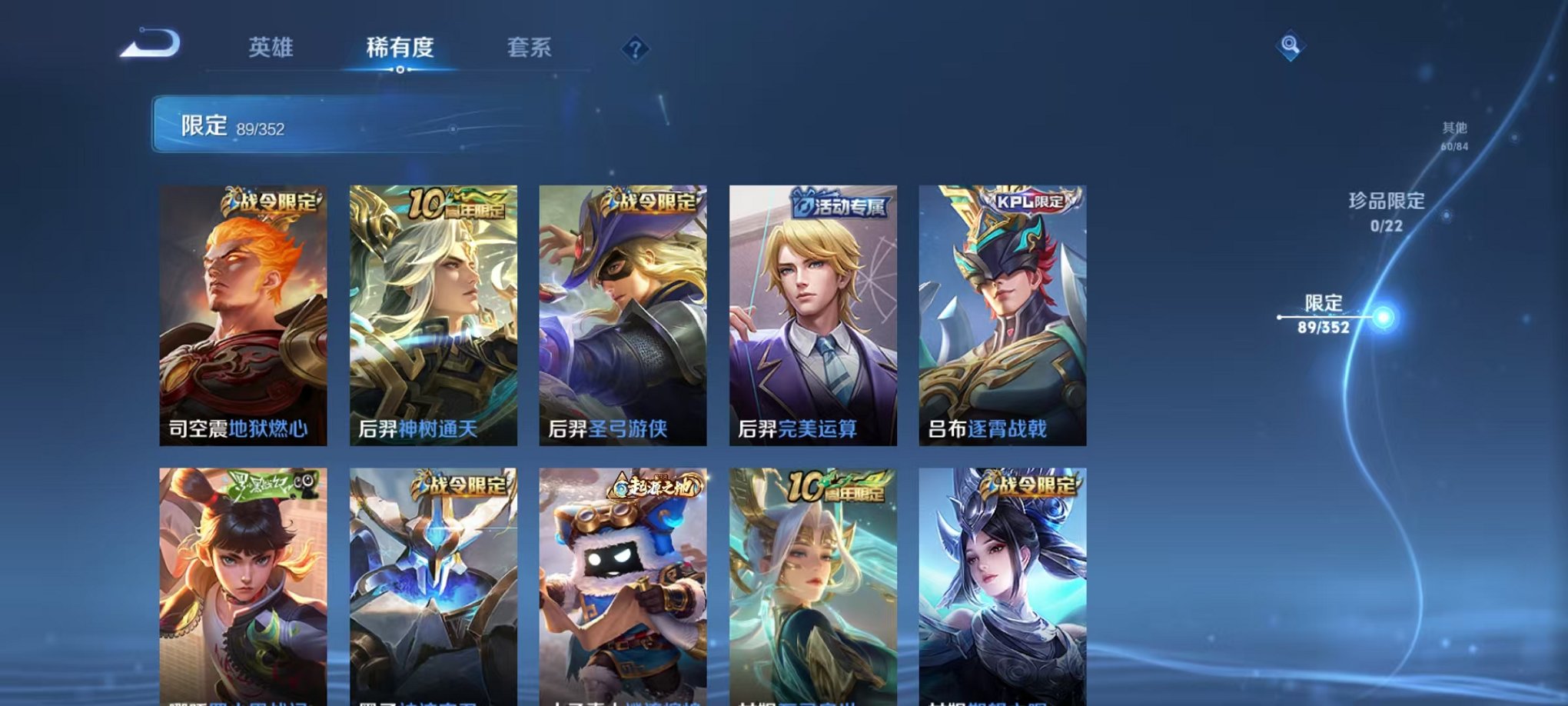 安卓QQ 皮肤294 英雄126 典藏1 传说3 其他皮肤104 绝世王者-、