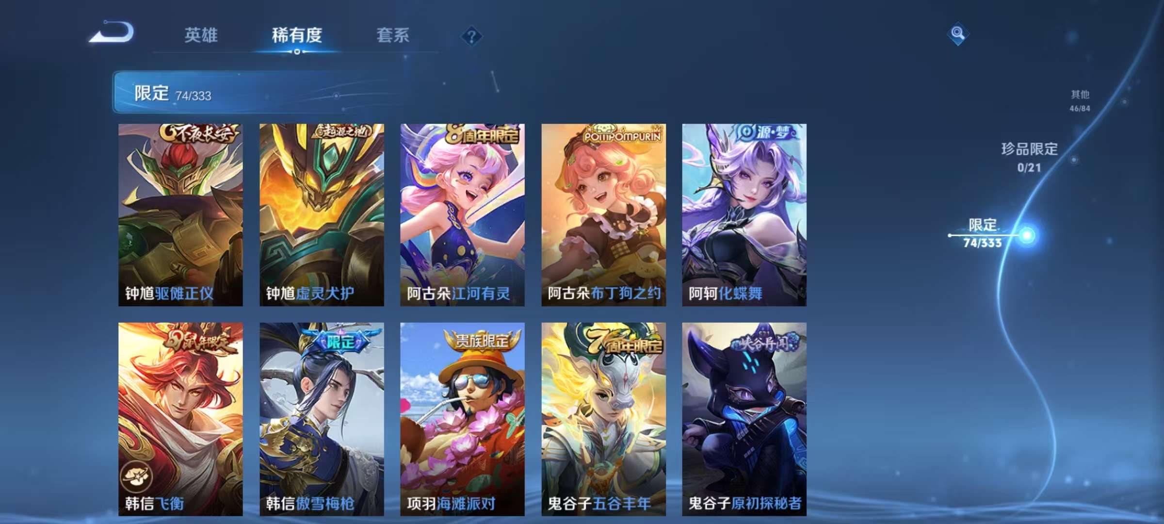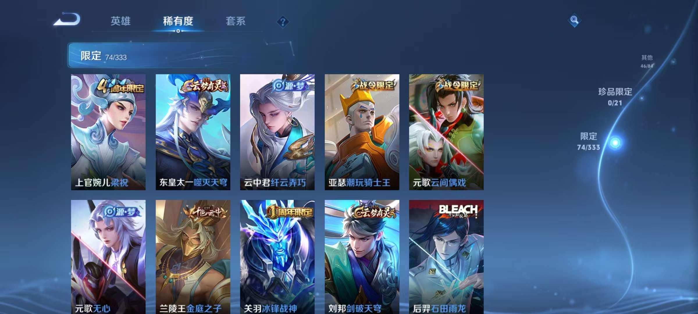 安卓QQ 皮肤235 英雄125 典藏1 传说5 其他皮肤86 永恒钻石-
