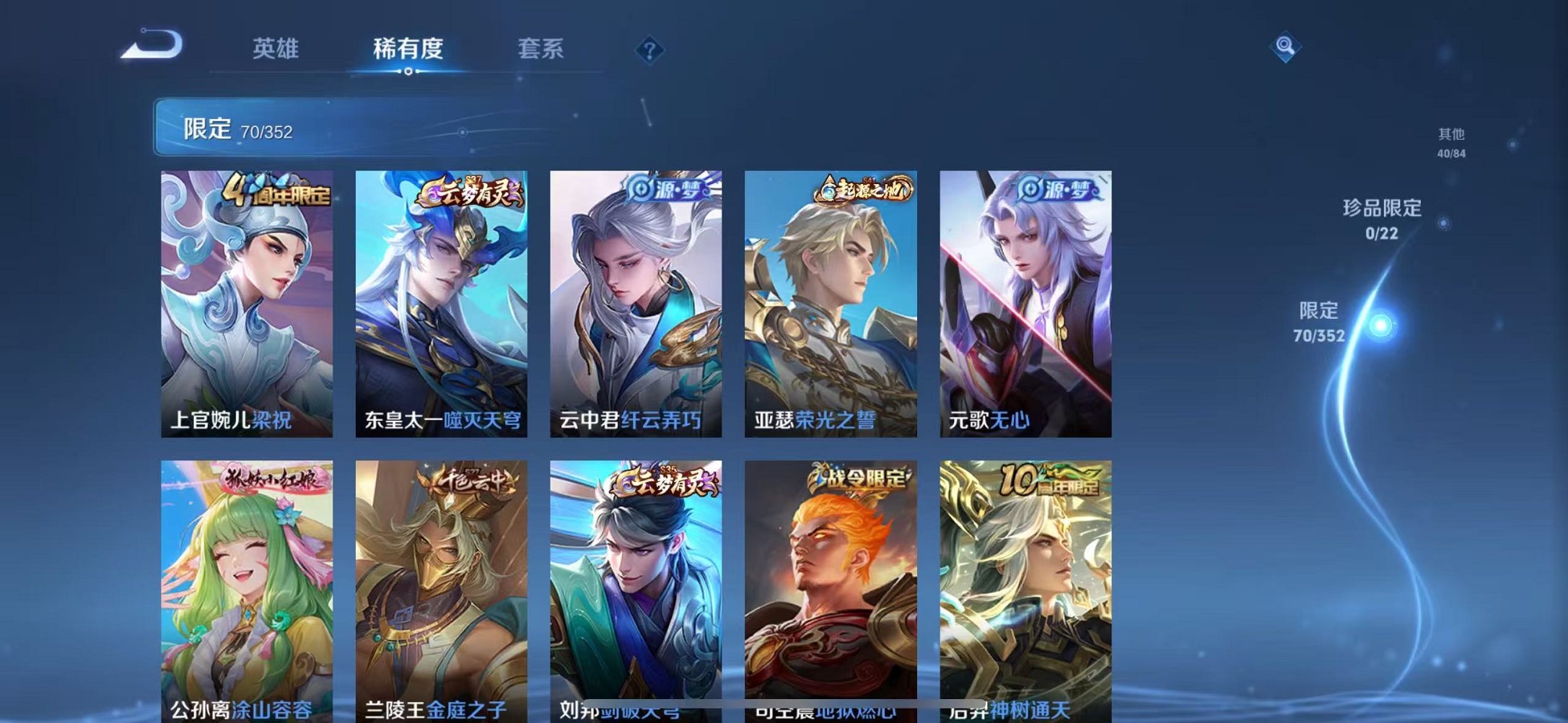 苹果QQ 皮肤247 英雄127 典藏1 传说7 其他皮肤89 无双王者-