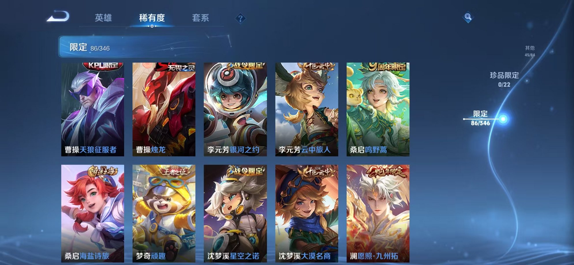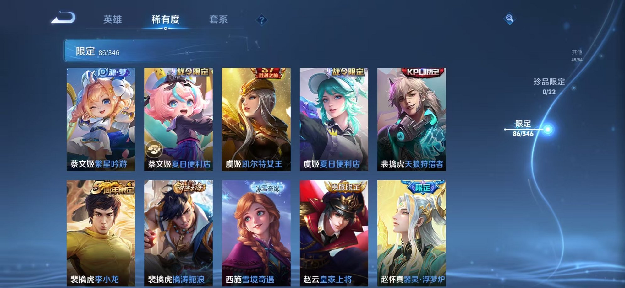 安卓QQ 皮肤264 英雄124 传说7 其他皮肤110 至尊星耀-