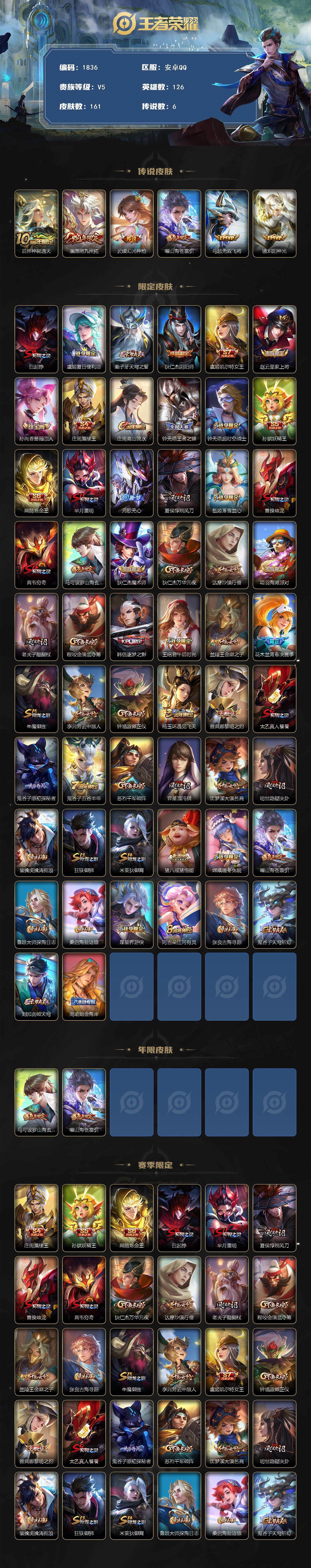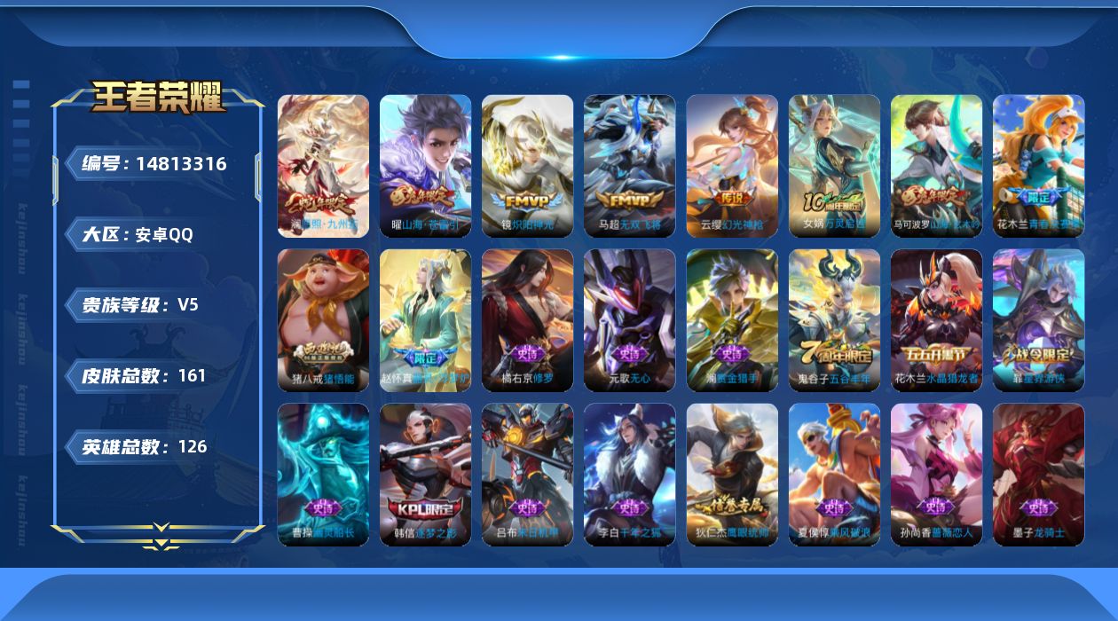 安卓QQ 皮肤161 英雄126 传说6 其他皮肤75 无双王者-