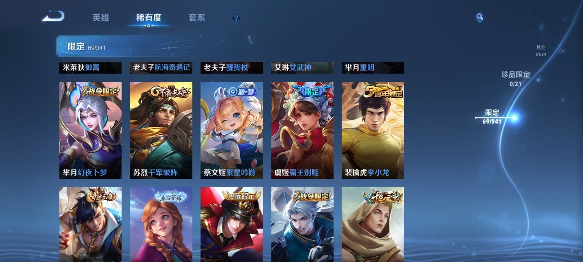 安卓QQ 皮肤238 英雄123 典藏1 珍品传说1 传说4 其他皮肤95 永恒钻石-