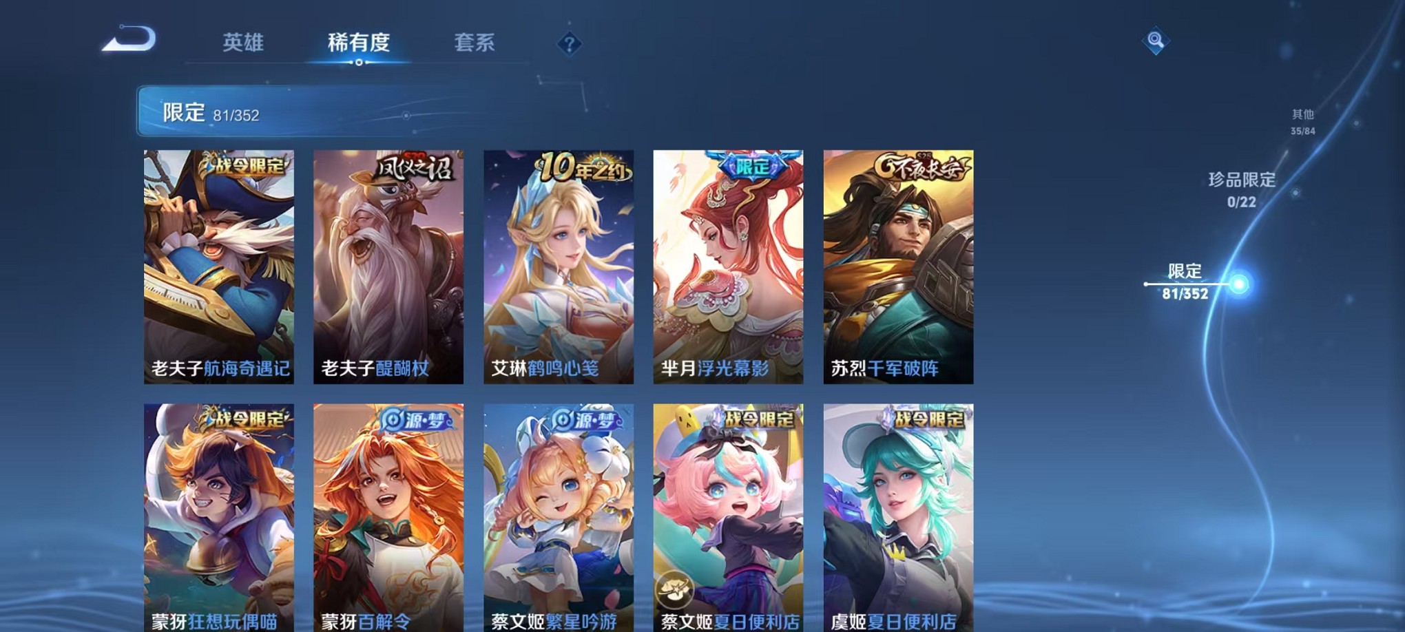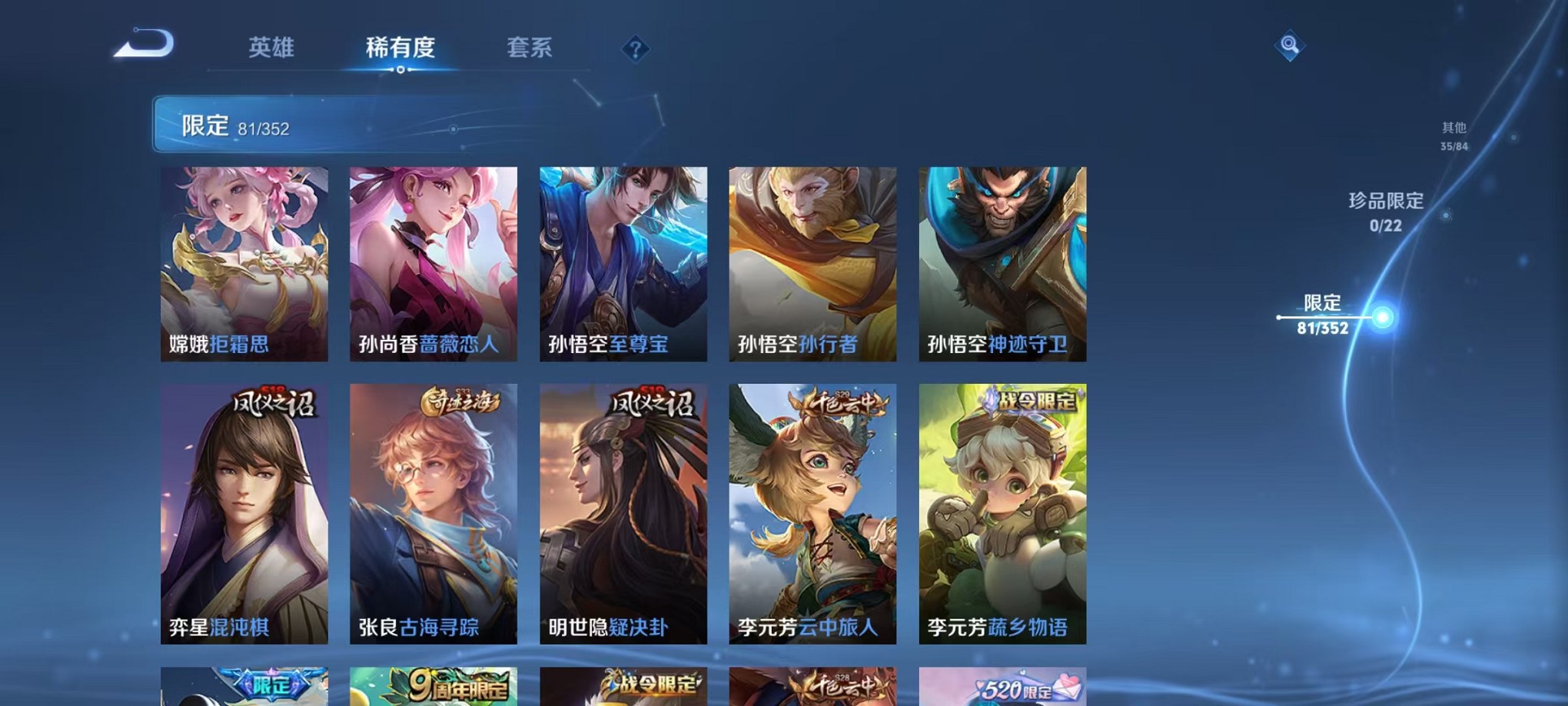 安卓QQ 皮肤228 英雄125 传说6 其他皮肤96 最强王者-