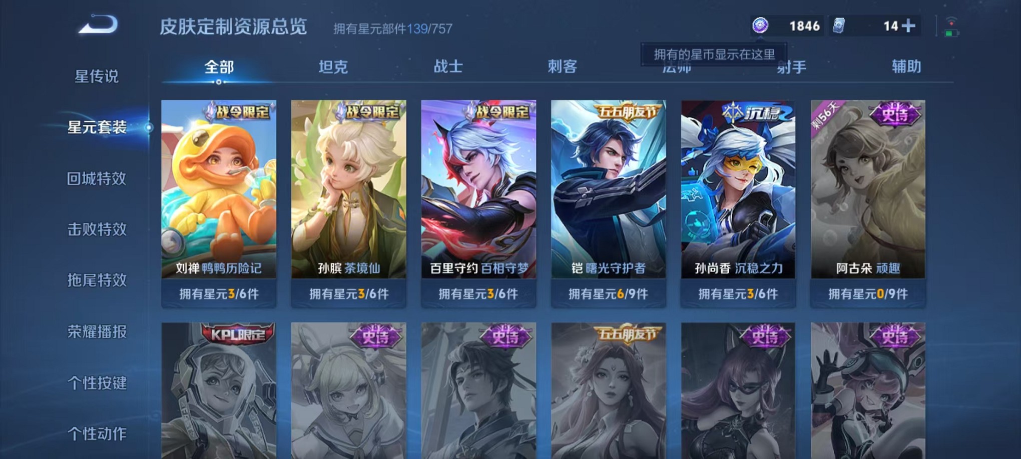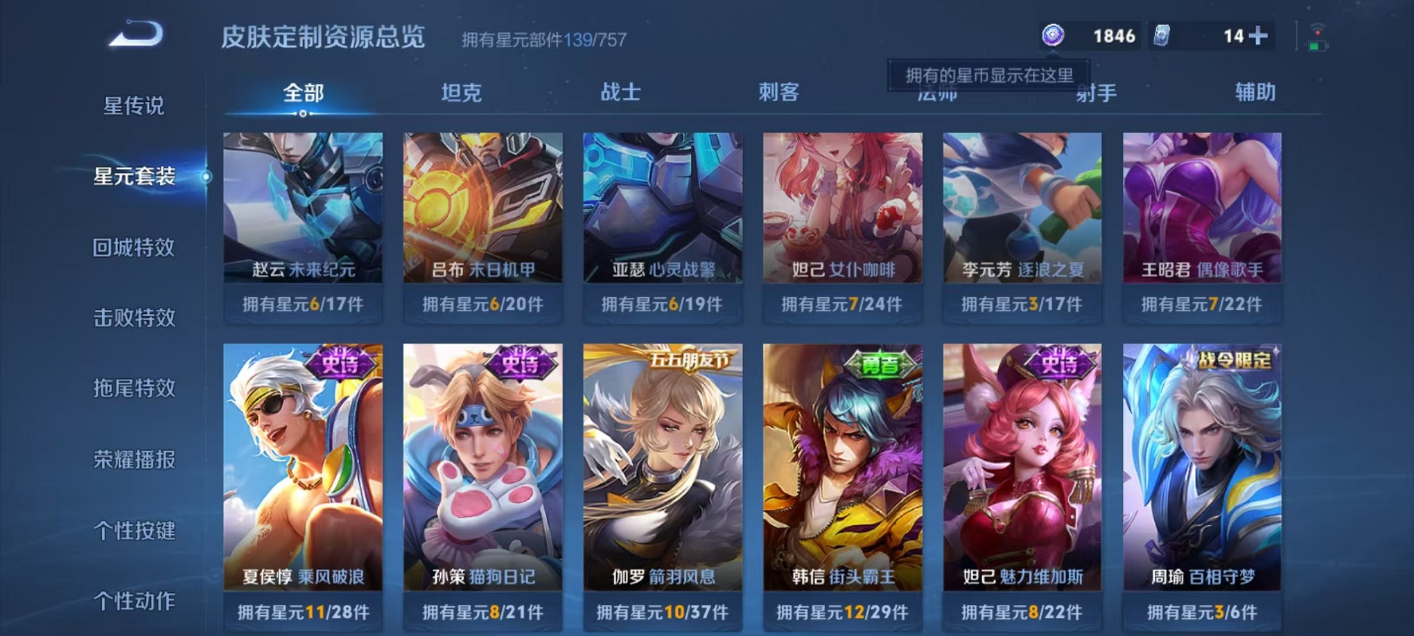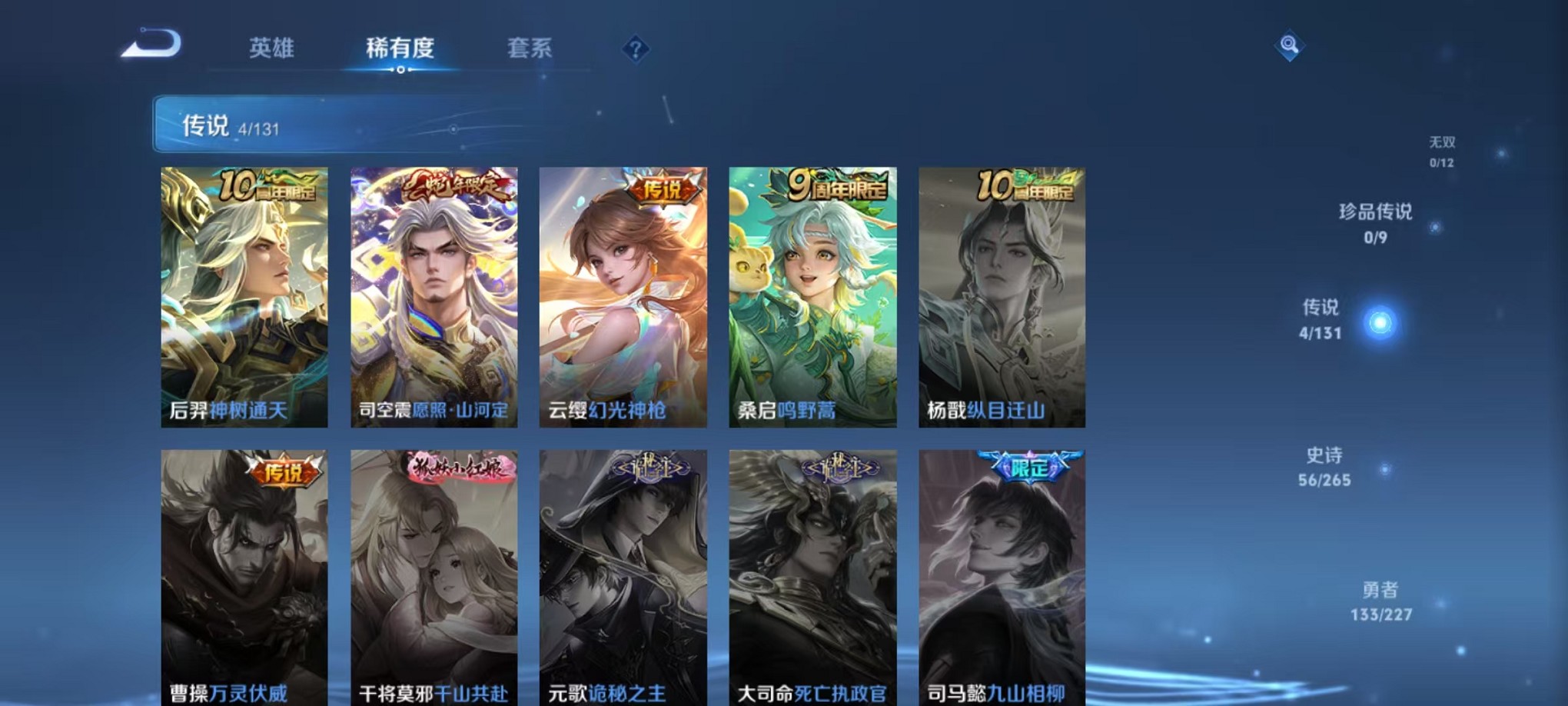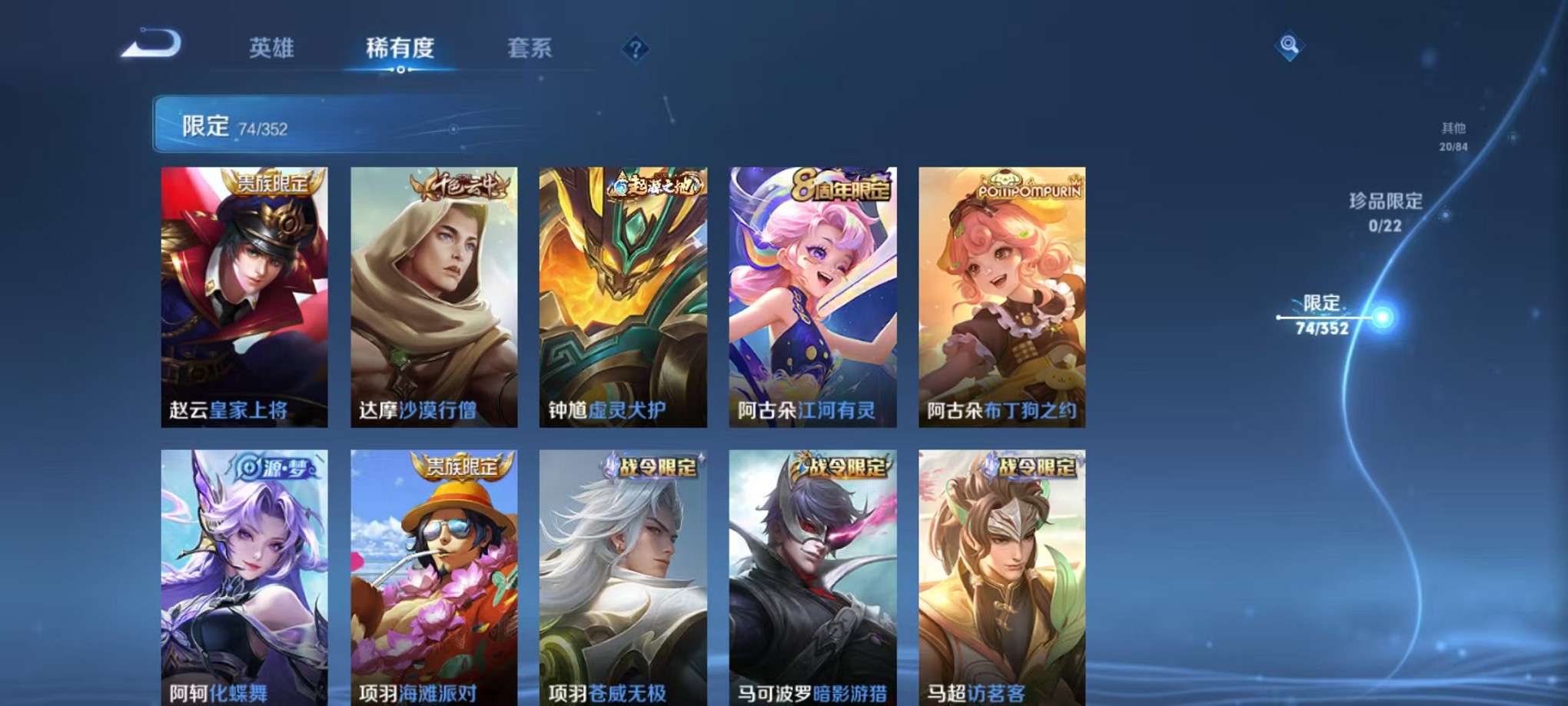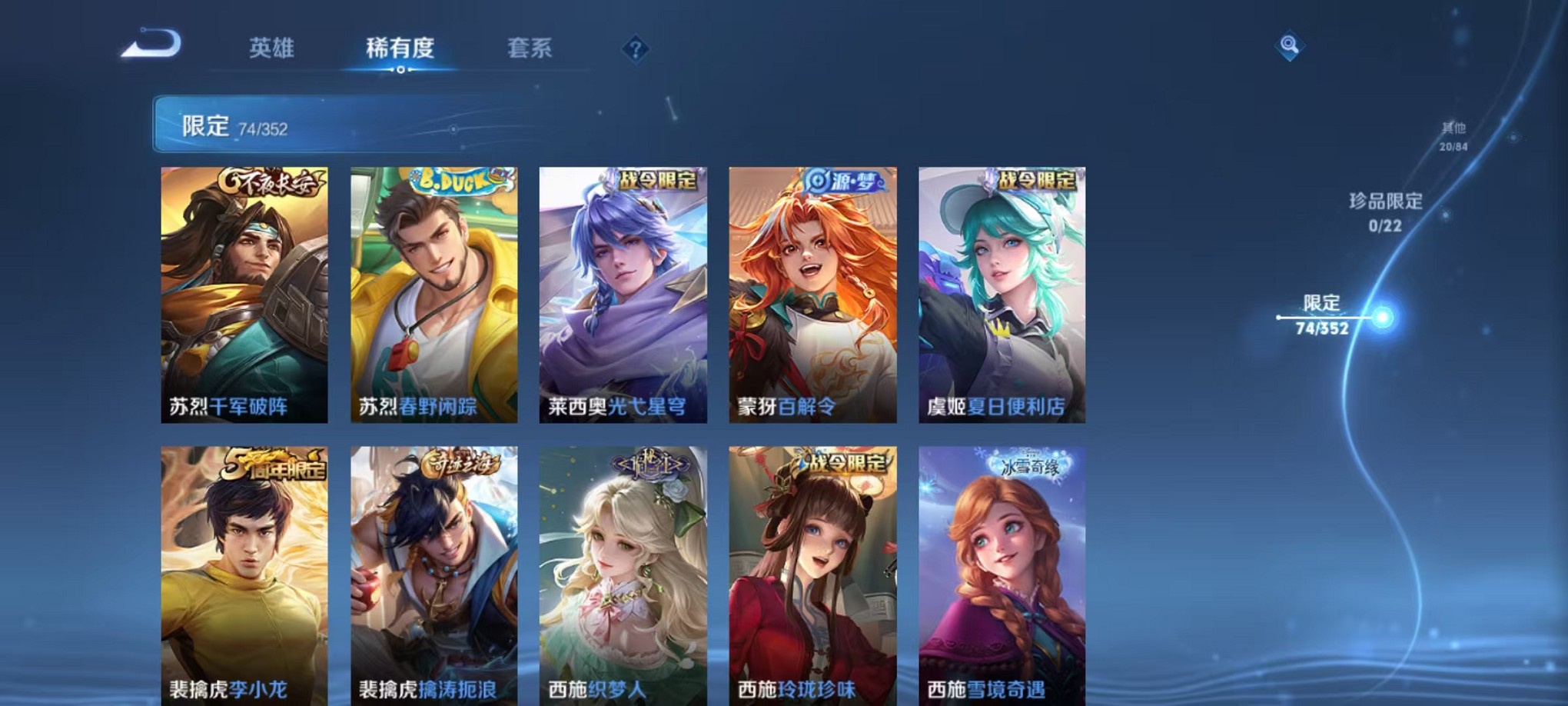 安卓QQ 皮肤214 英雄125 典藏1 传说4 其他皮肤64 至尊星耀-