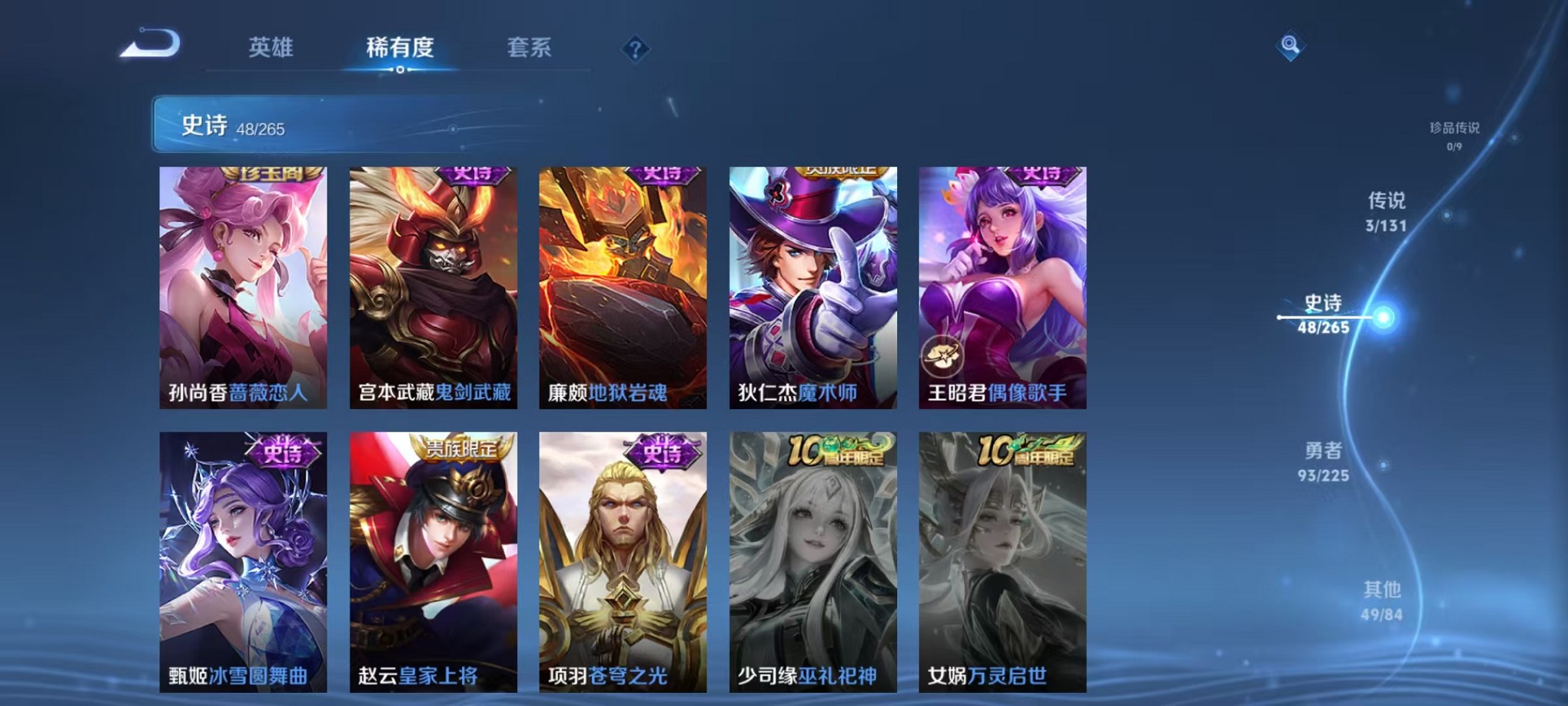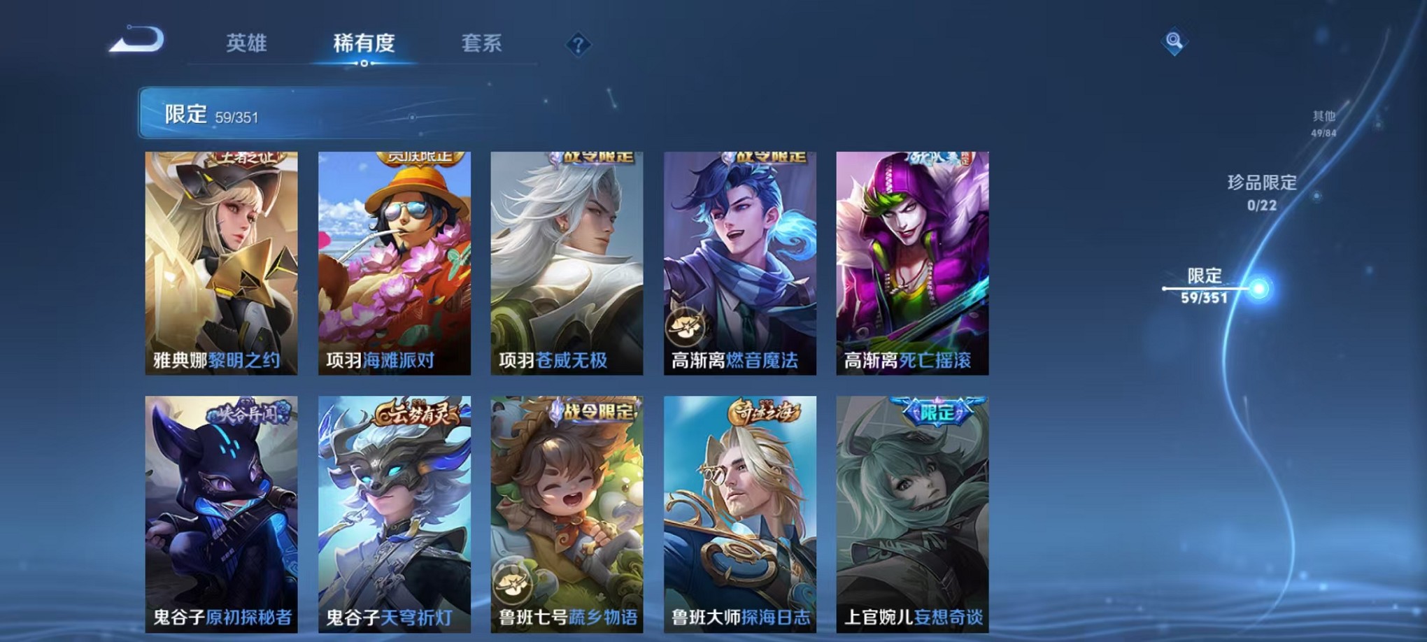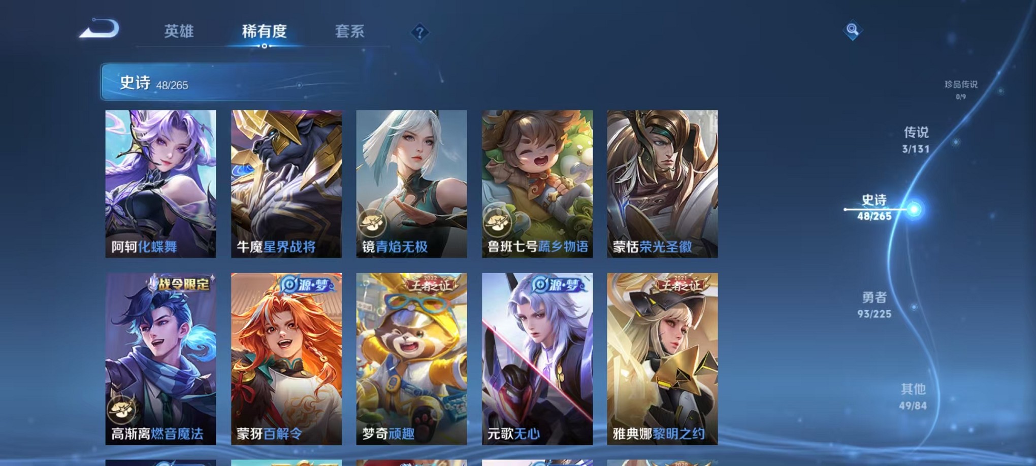 安卓QQ 皮肤194 英雄125 典藏1 传说3 其他皮肤70 荣耀王者-