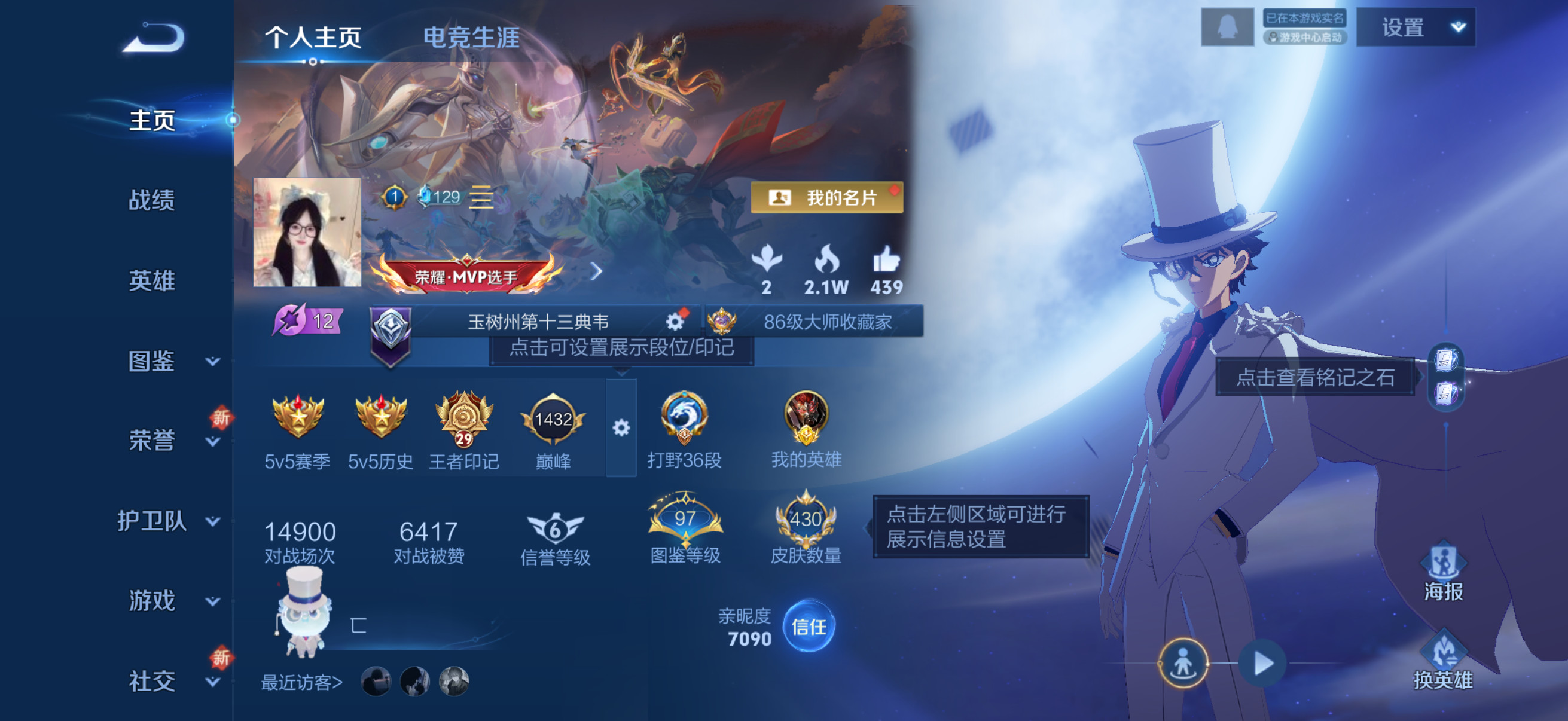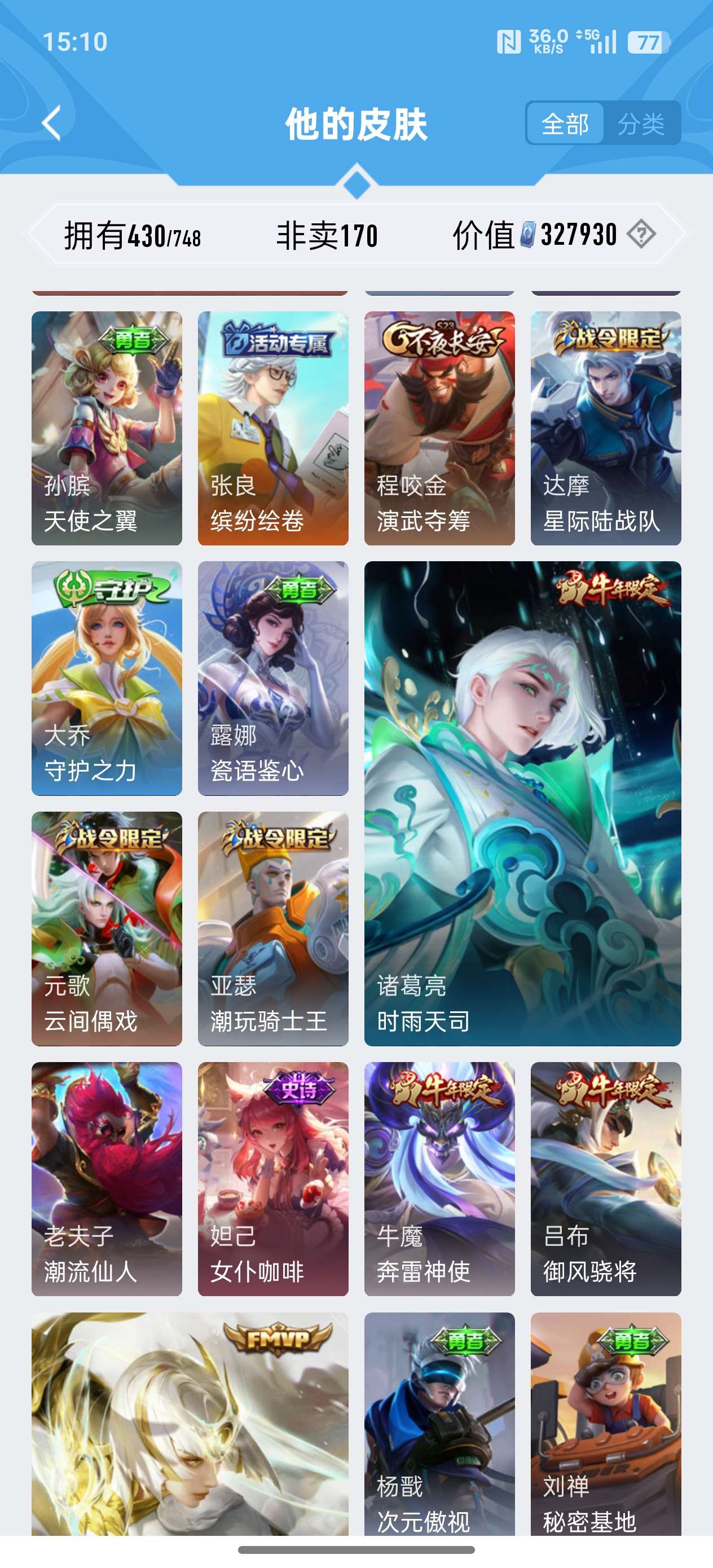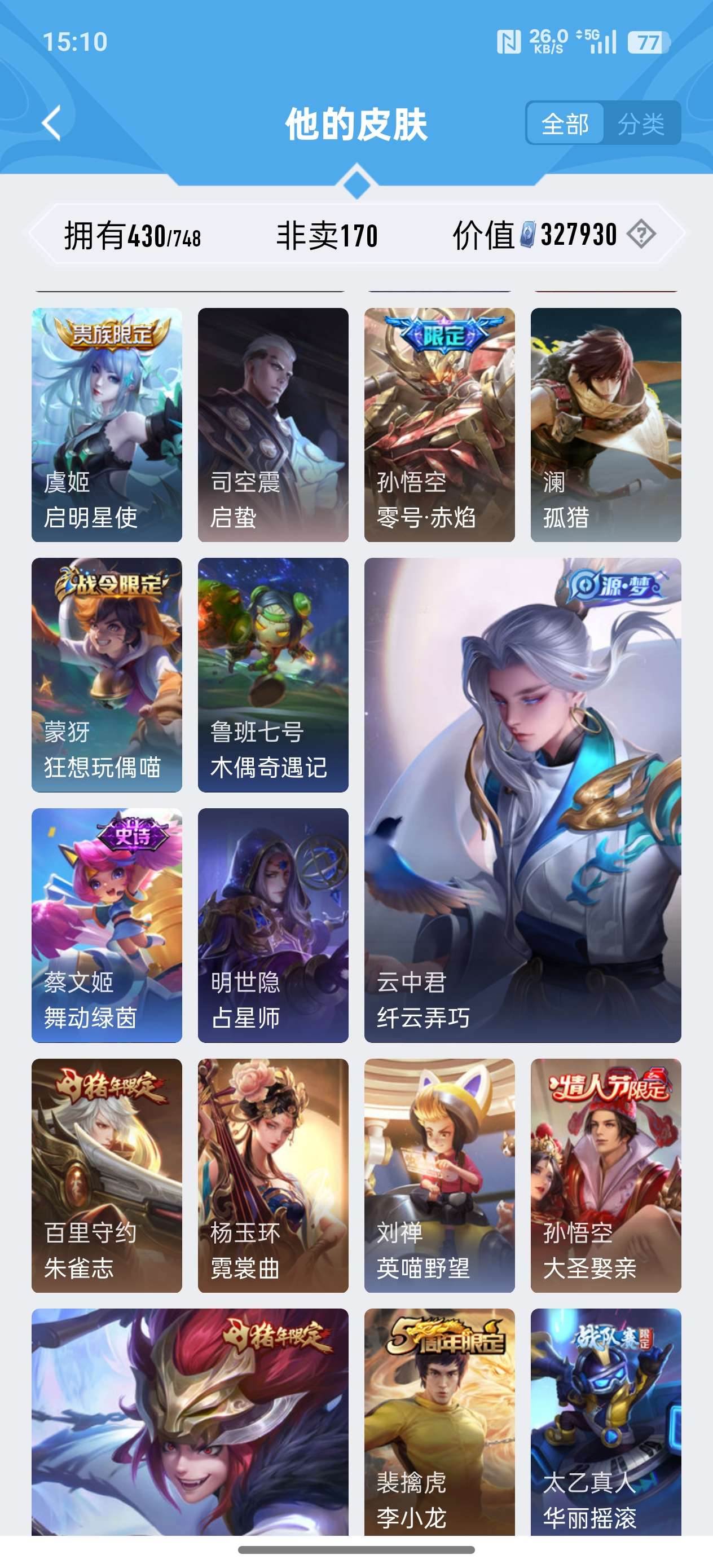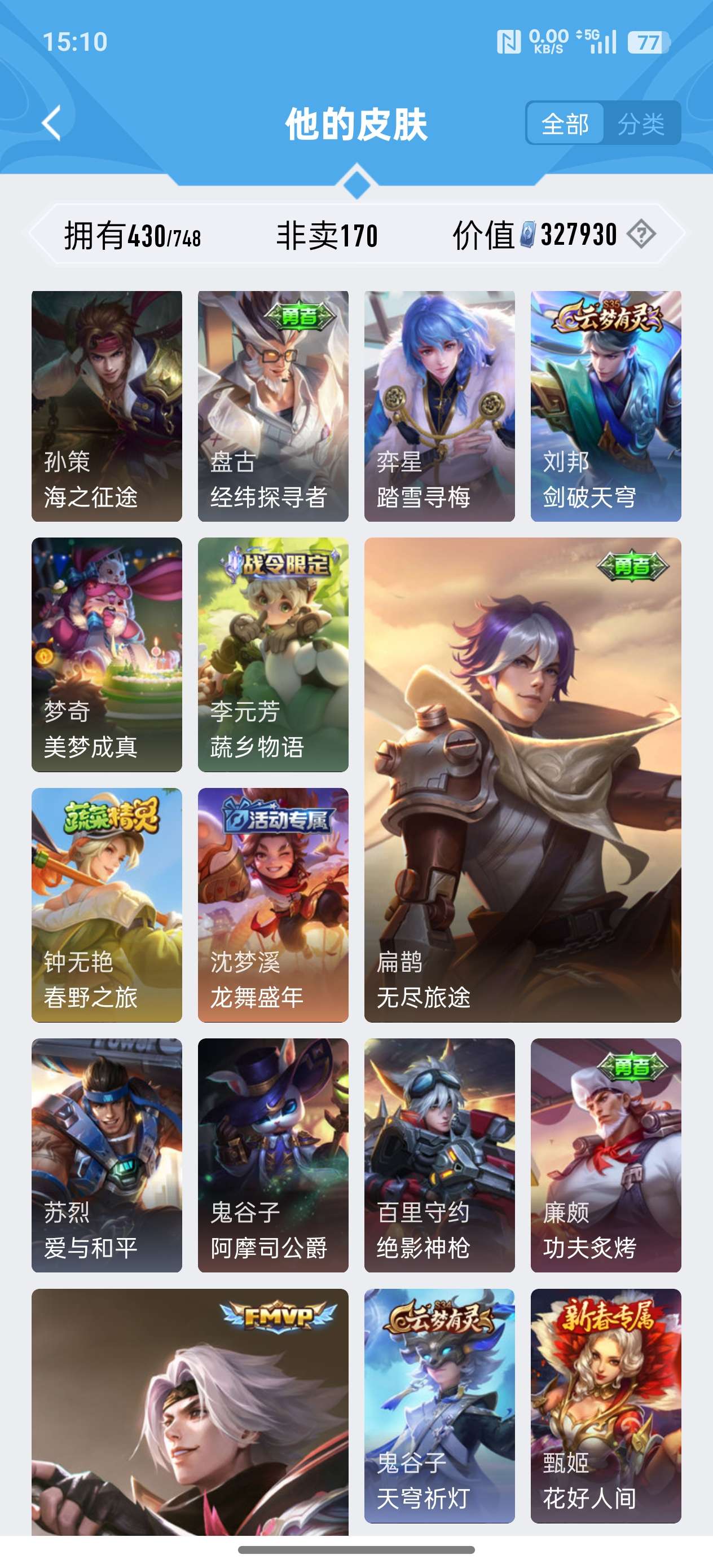 苹果QQ/荣耀王者/430皮肤/124英雄/2典藏/0珍品无双/0无双/3珍品传说/24传说/134