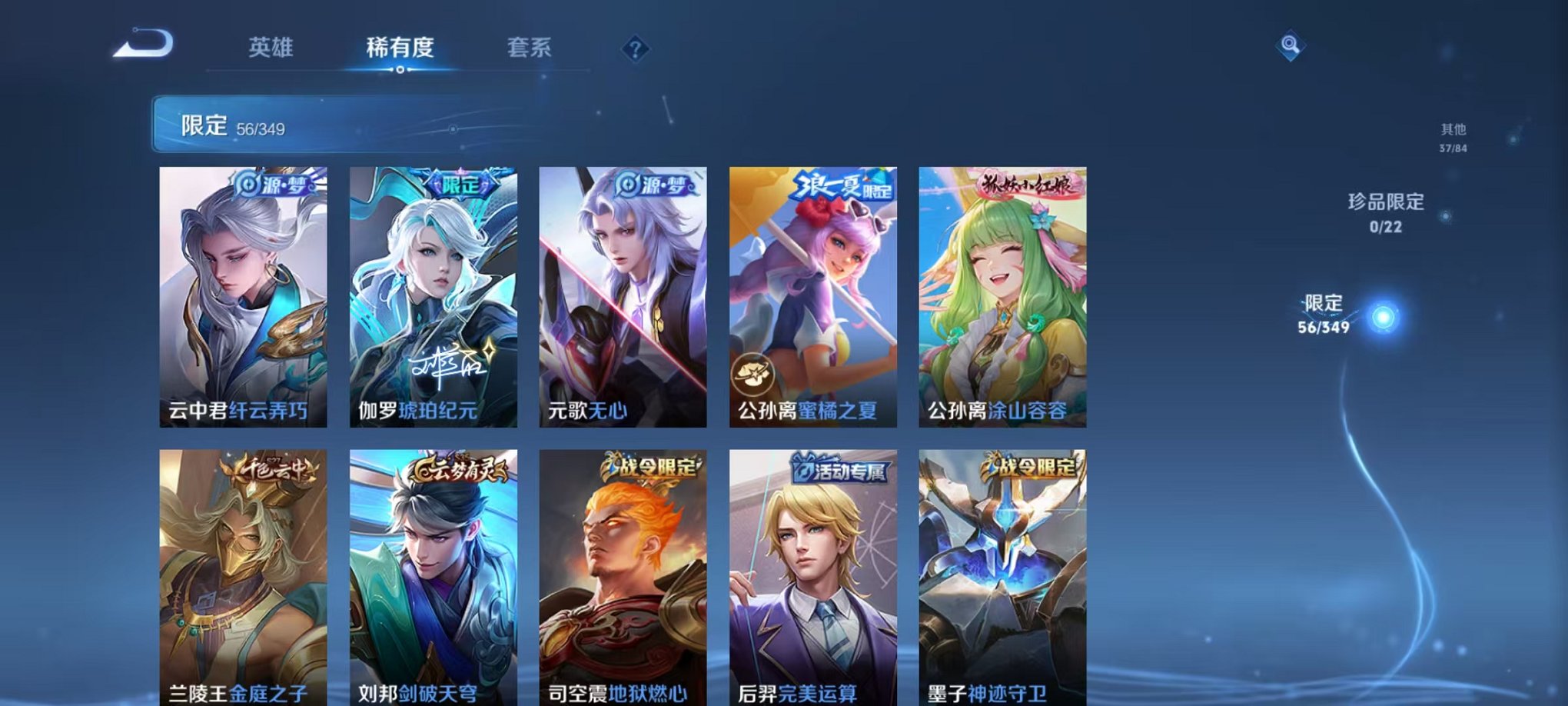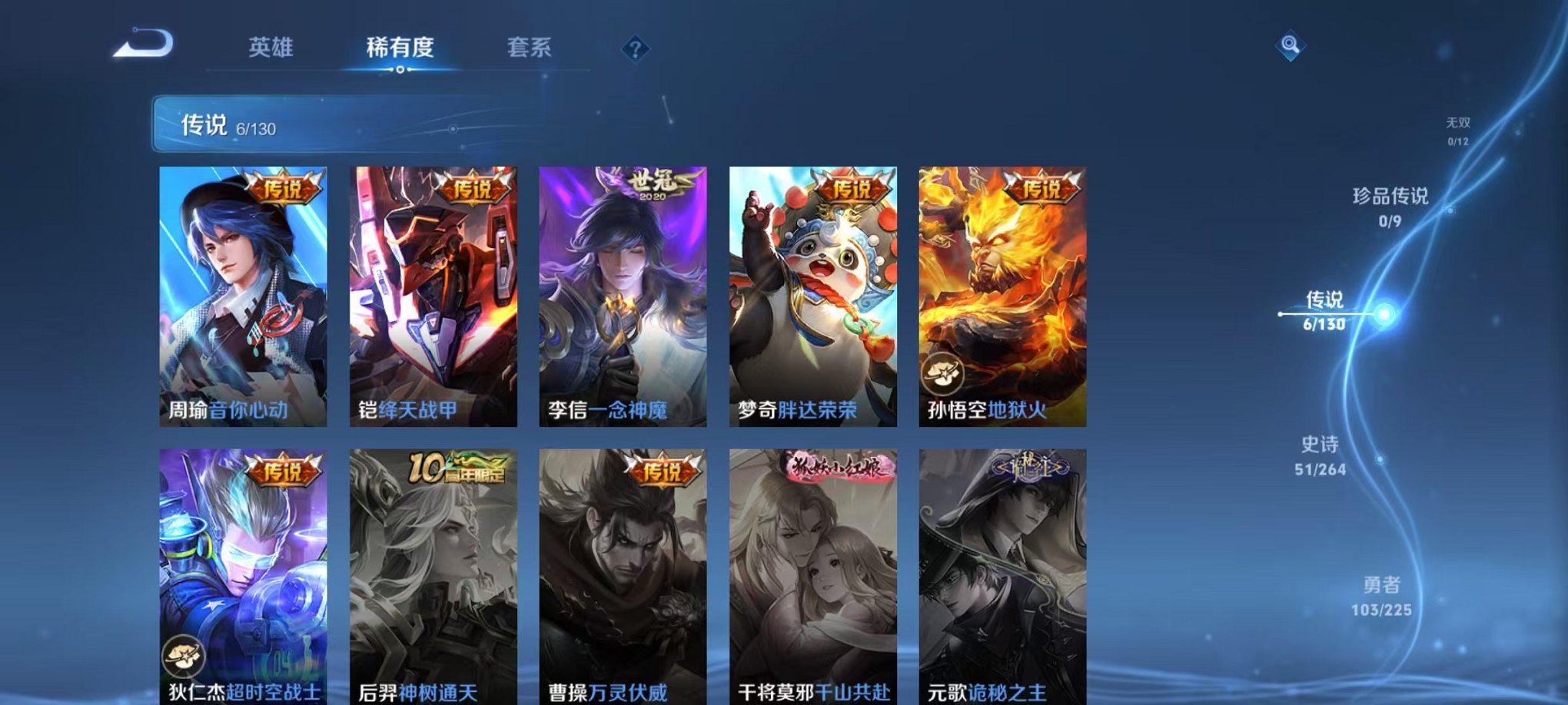 安卓QQ 皮肤198 英雄125 传说6 其他皮肤76 尊贵铂金-