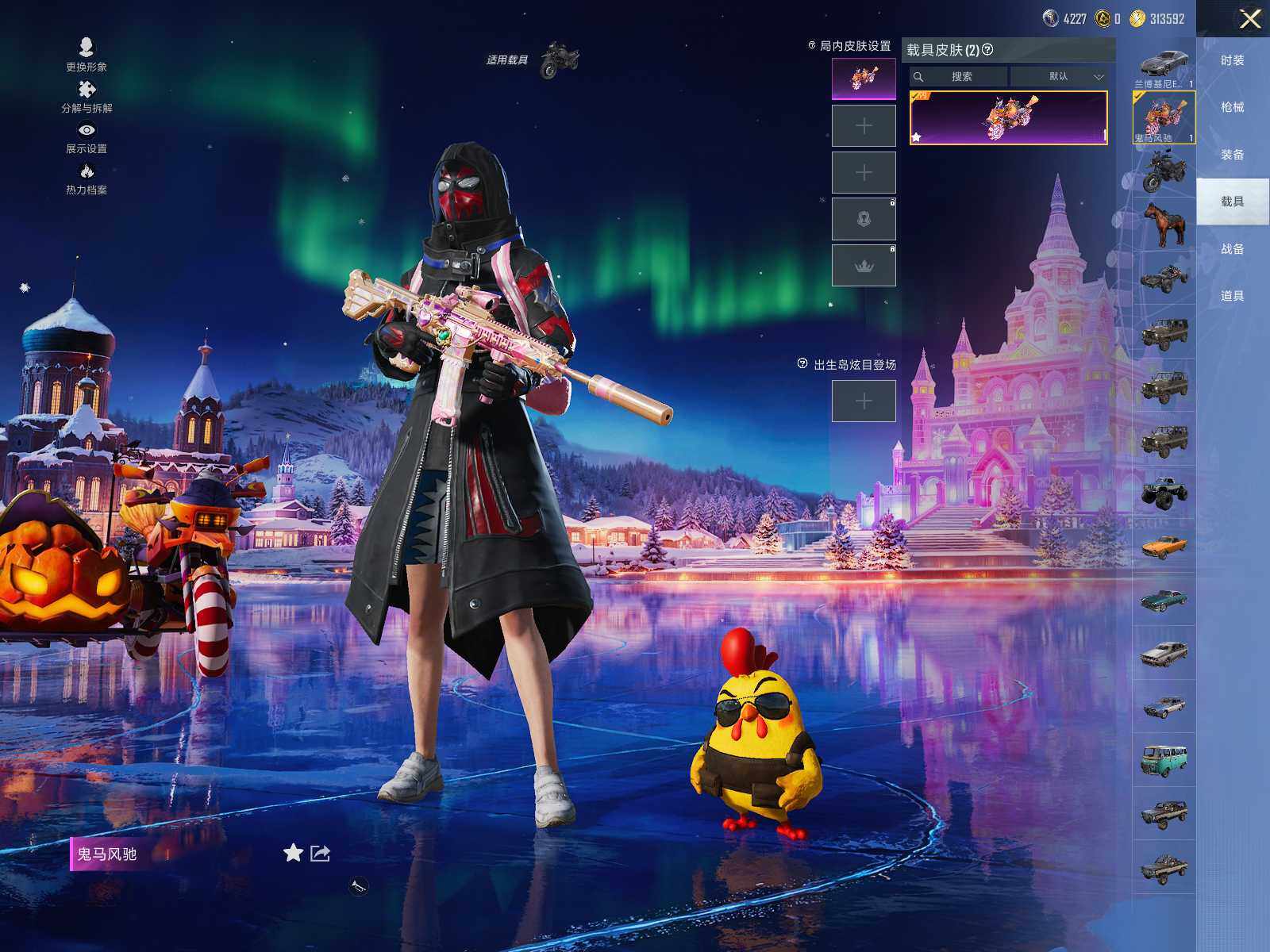 苹果 手Q-3粉装-6特效枪-2载具-1粉色飞行器-56892热力值-14王牌印记-112套装-166枪皮