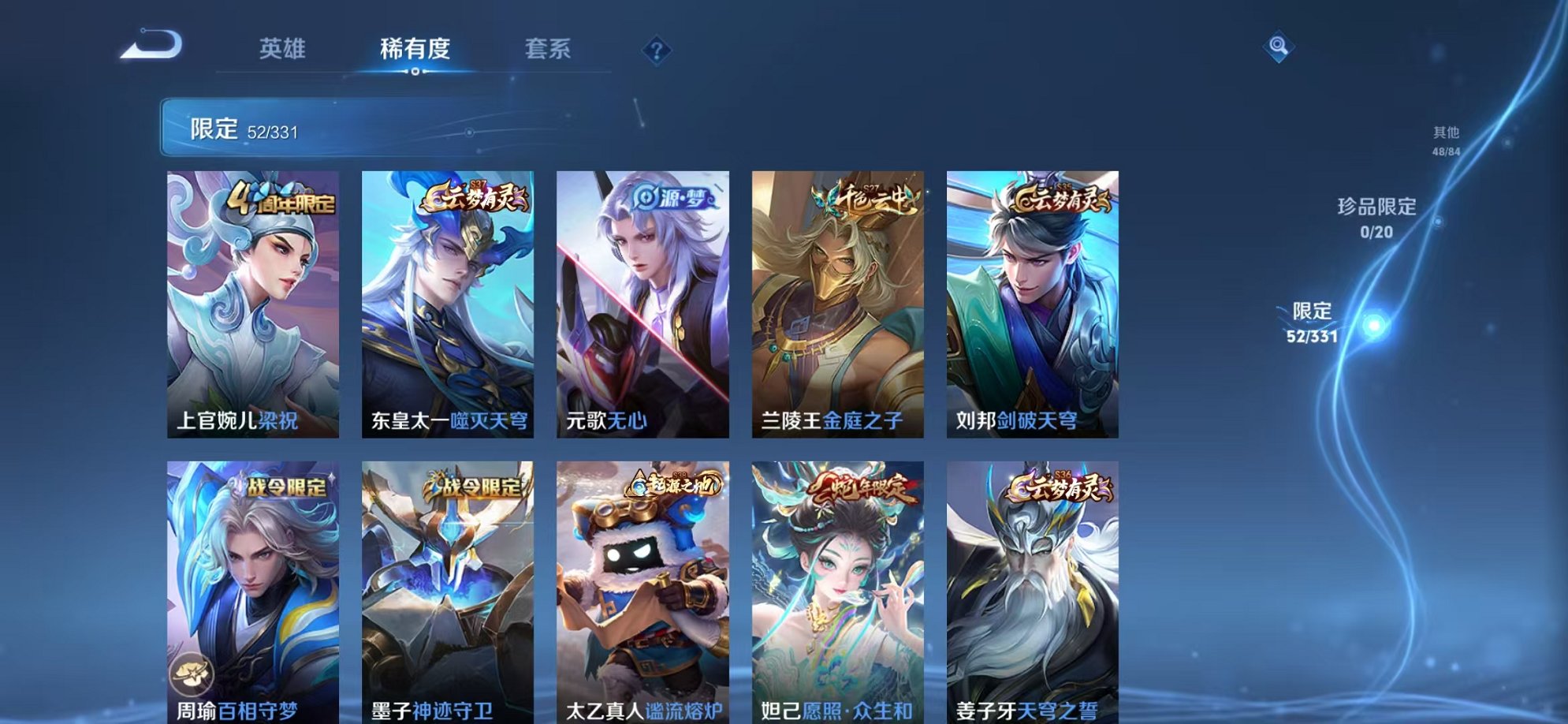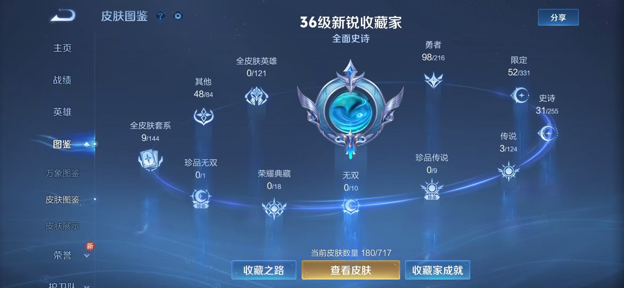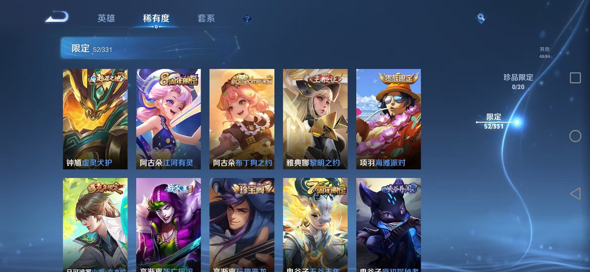安卓QQ 皮肤180 英雄123 传说3 其他皮肤55 至尊星耀-