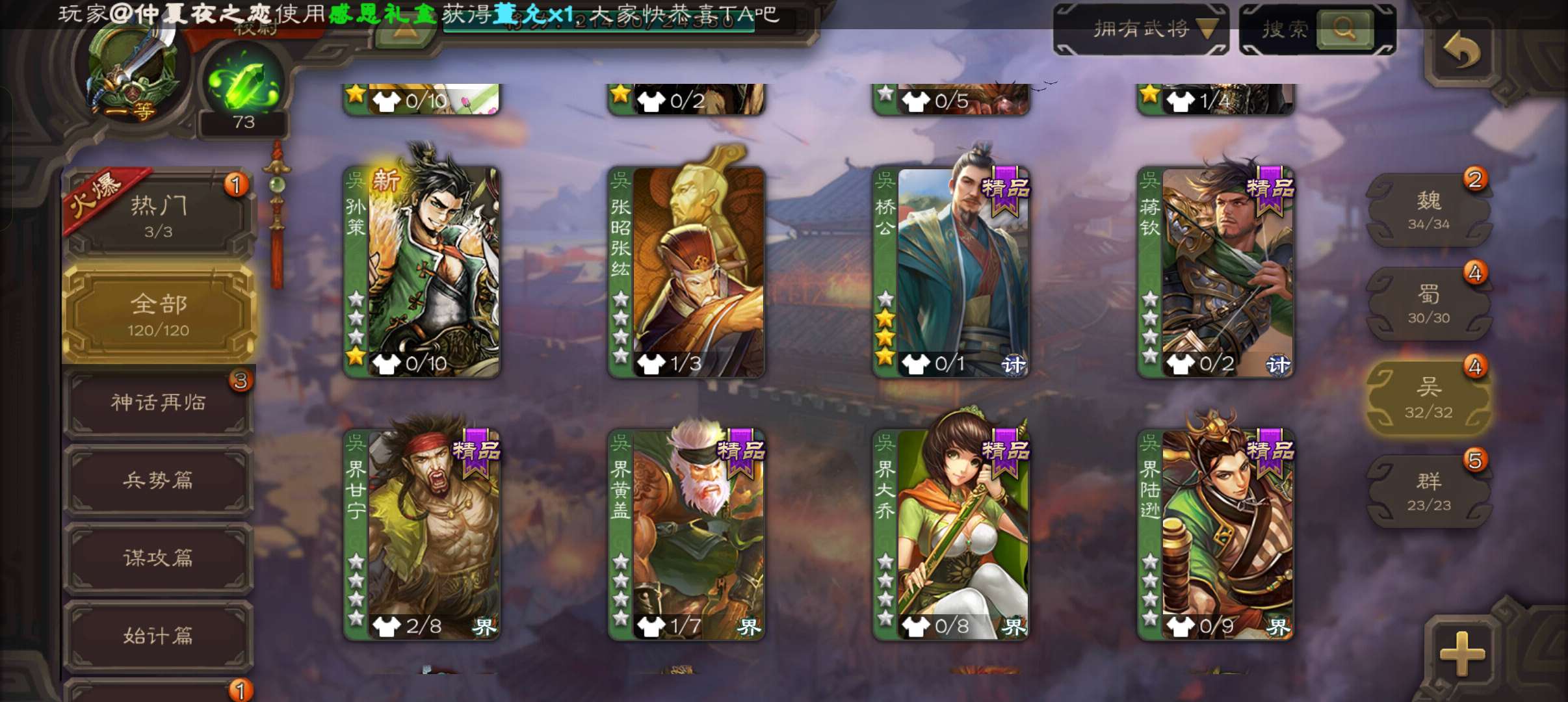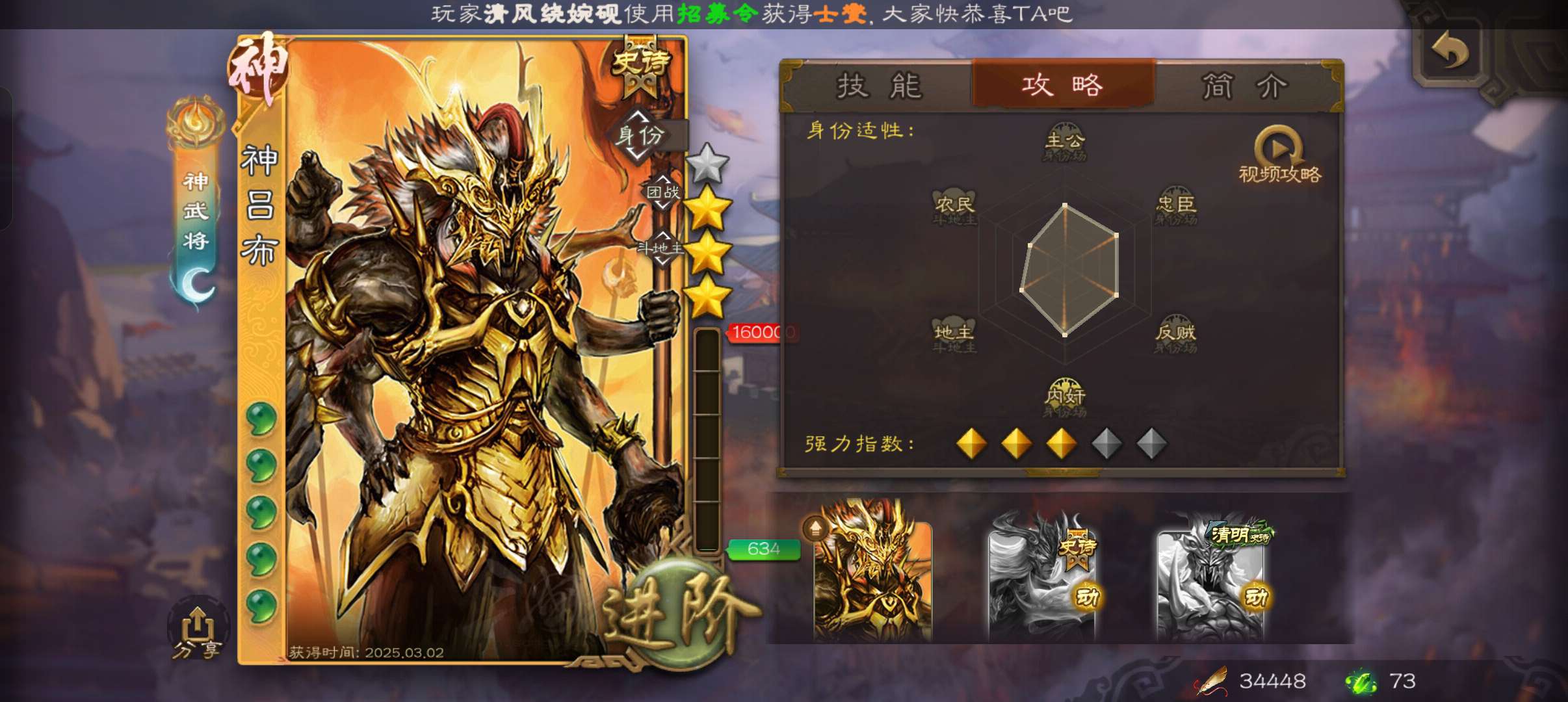 3.9万豆,回廊动白马神吕布双史诗一等校尉,甘夫人崔琰桥公贾充120将
