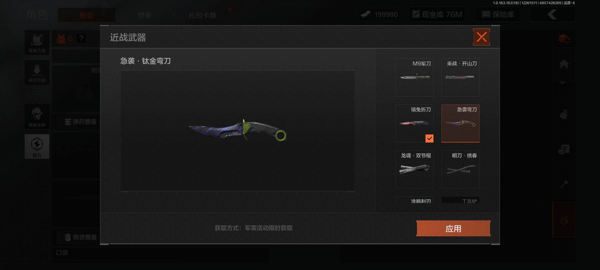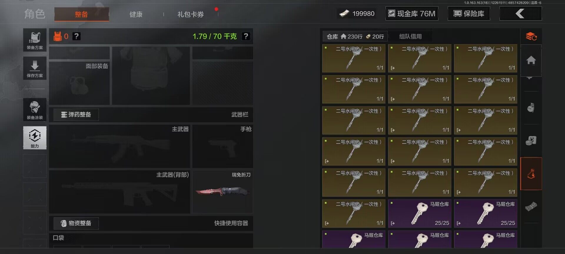 等级:30/段位:暗区传说/仓库价值(百万):112.9/柯恩币:76350683/