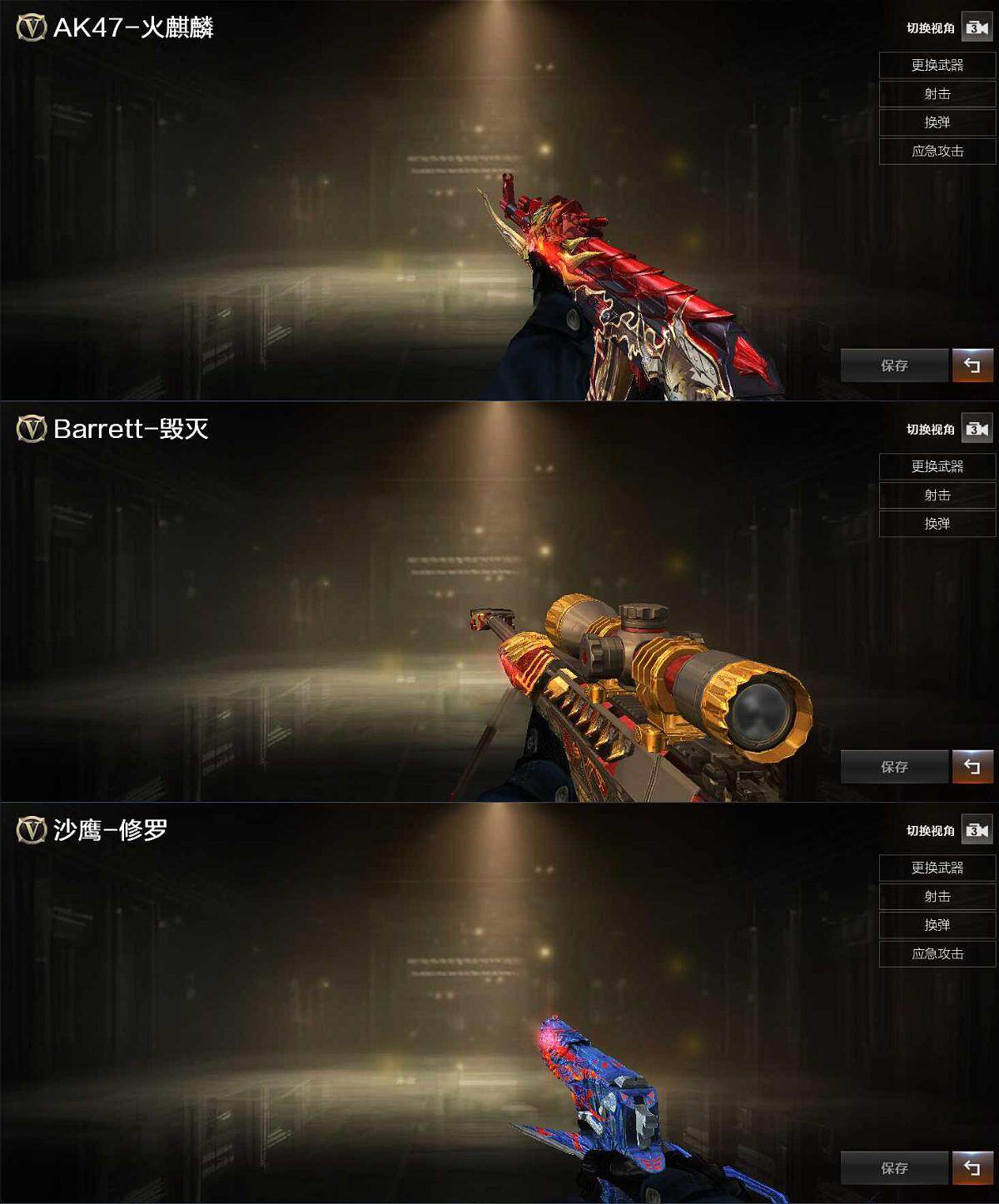 【英雄级武器】:无影-神兵利器,Barrett-毁灭,麒麟刺-堕天神,幻灵之锋,龙啸-堕天神,高爆手雷-堕