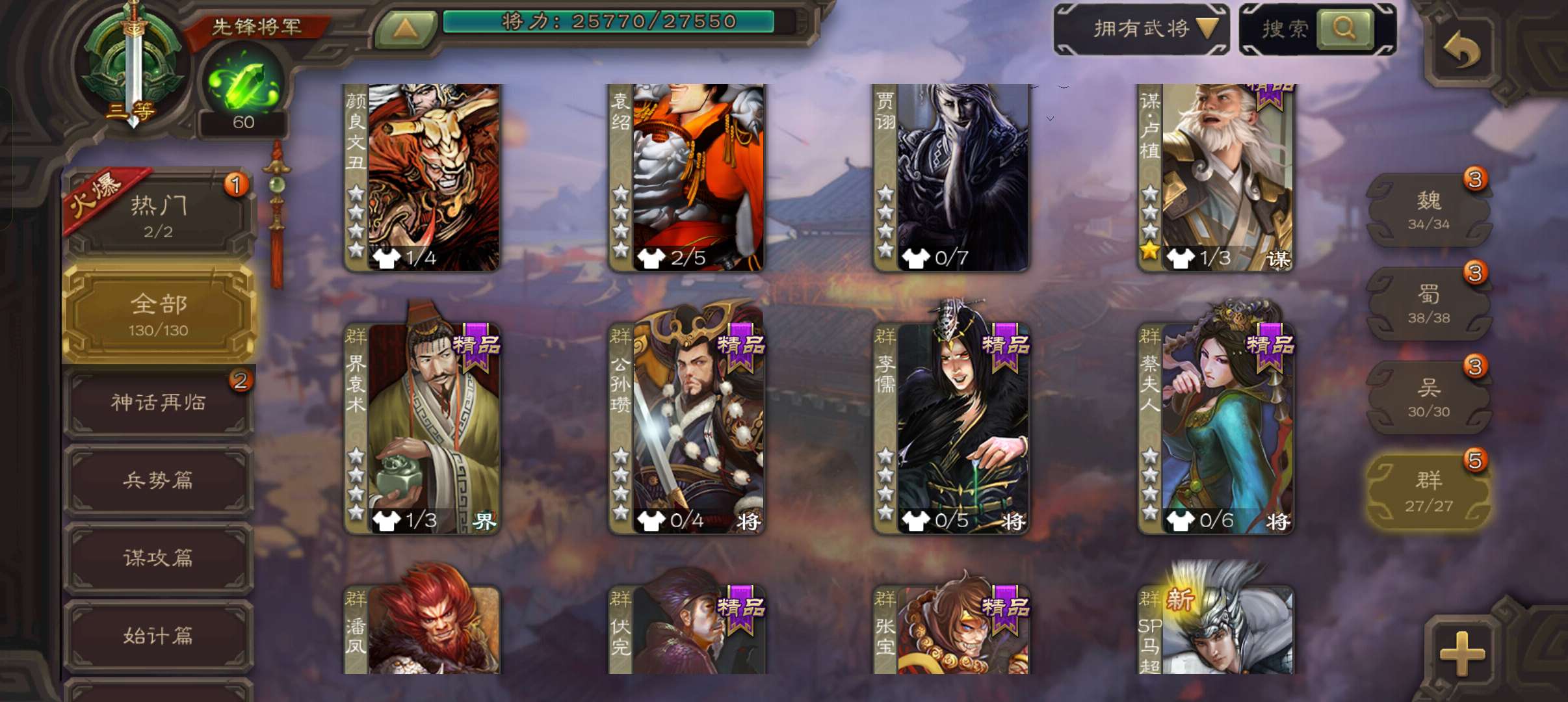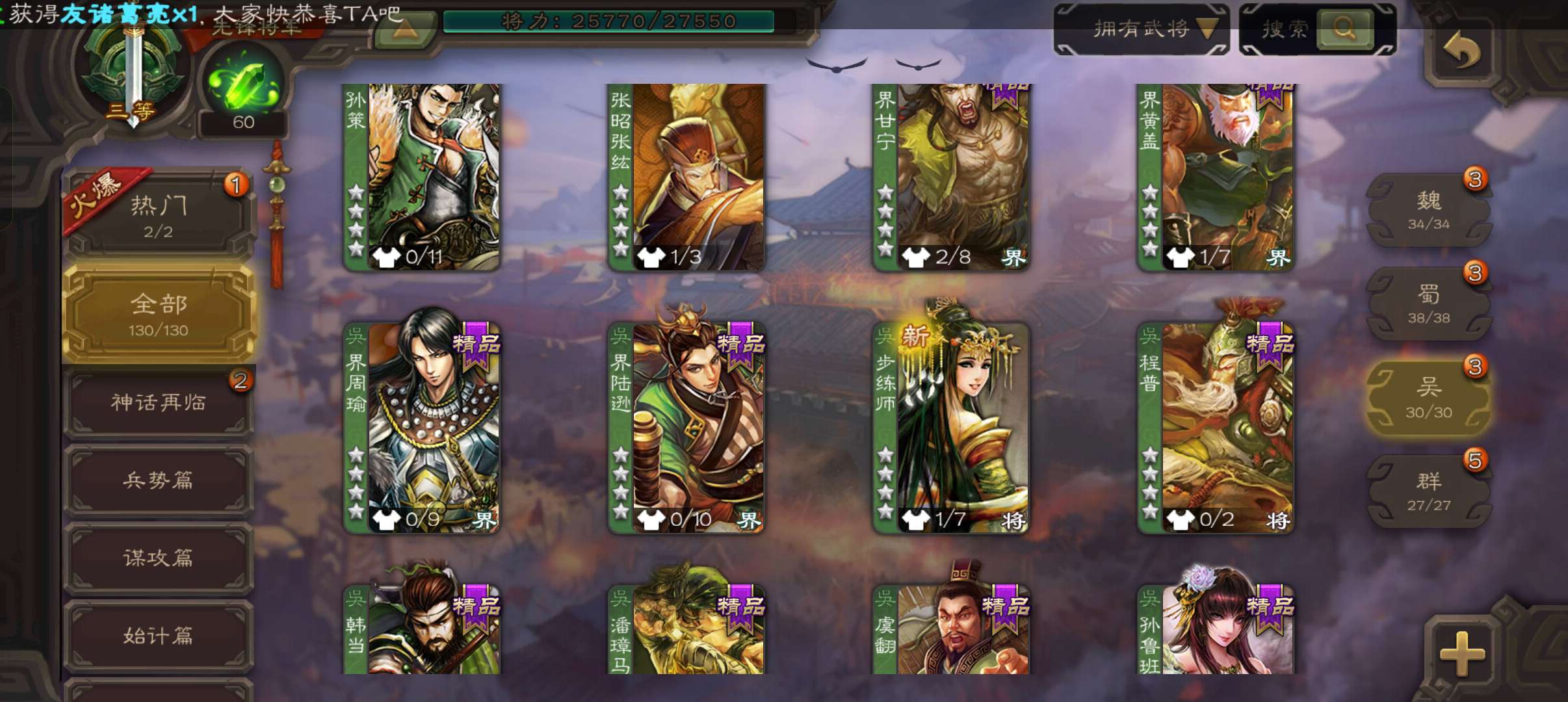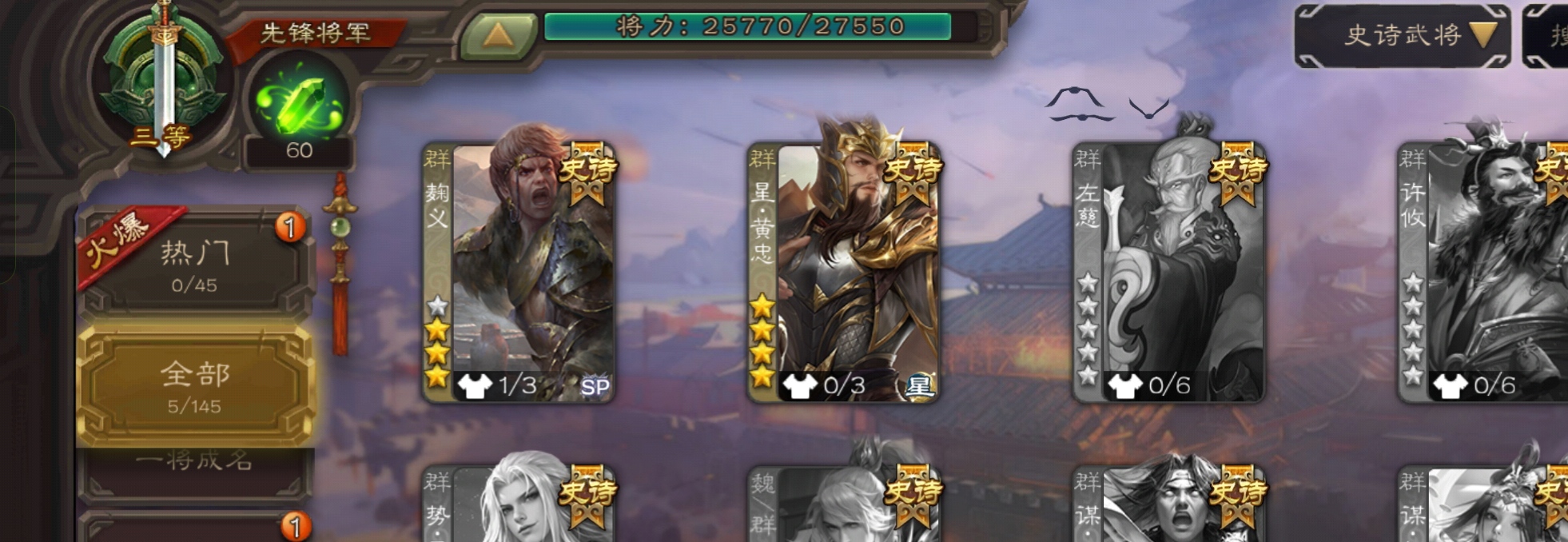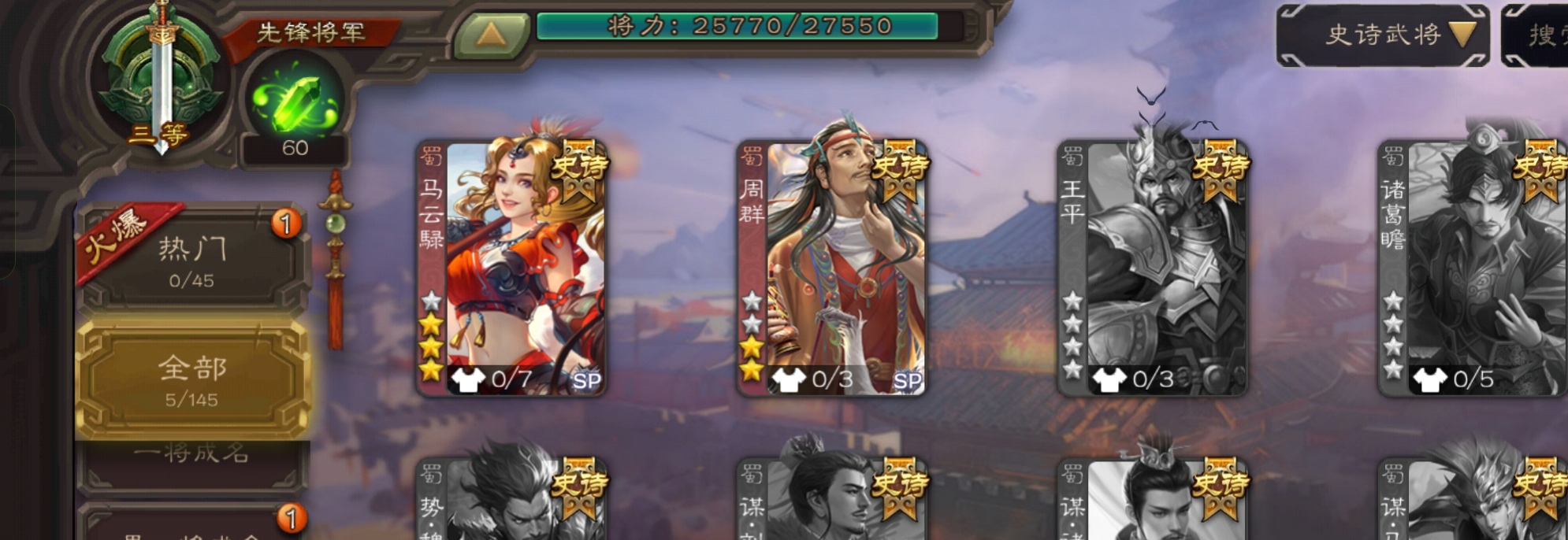 5史诗先锋,6万豆,玉龙星黄忠回廊动白马周群马云騄杨修,动态神周瑜甘夫人关银屏谋卢植霍峻130将
