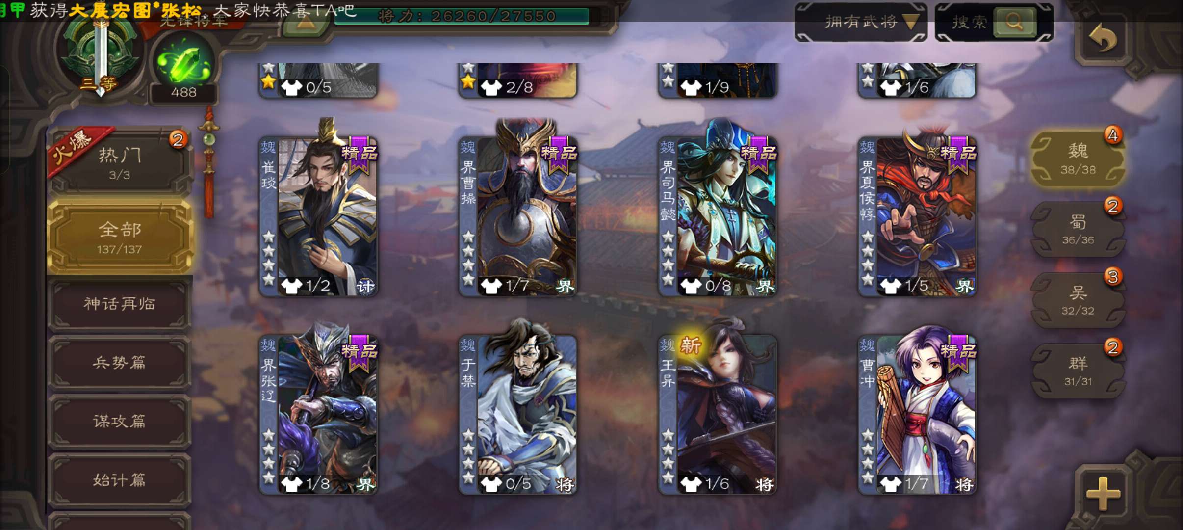 史诗武将数量: