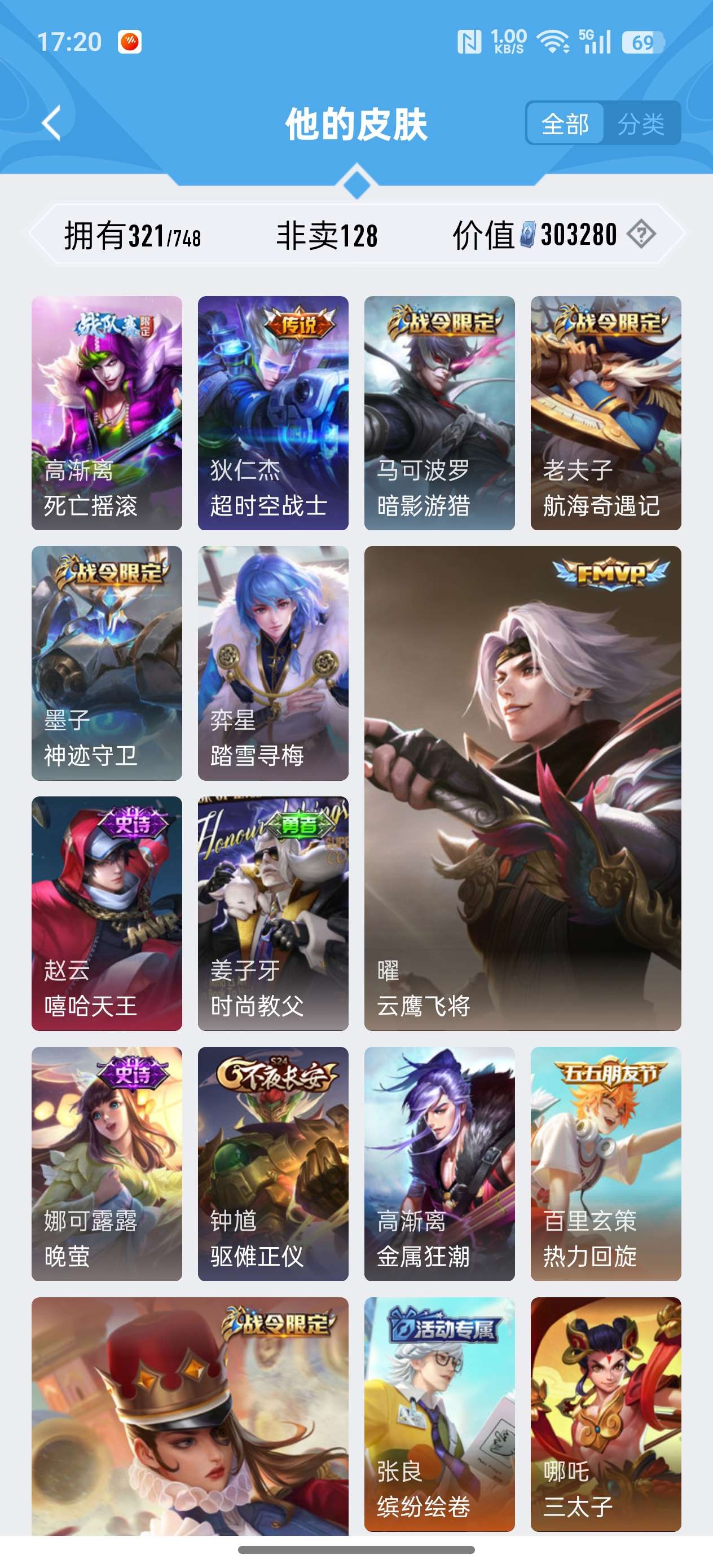 苹果QQ/至尊星耀/321皮肤/124英雄/4典藏/0珍品无双/1无双/3珍品传说/26传说/93史