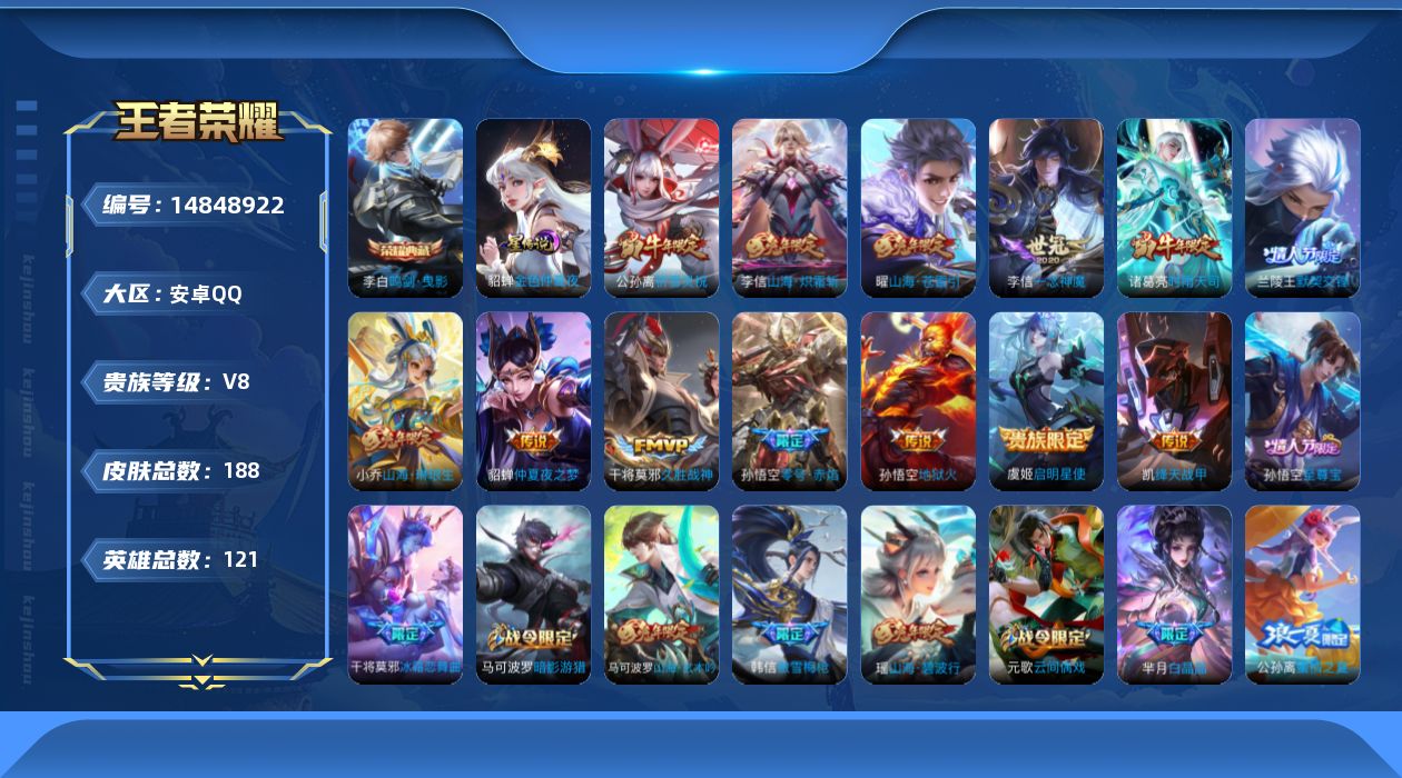 【14848922】[14848922]【精品号手慢无】V8,12月27日可换绑,满级铭文,性价比号,上手即玩,仲夏梦之夜,祈雪灵祝,至尊宝,山海·碧波行,山海·炽霜斩,山海·琳琅生,一念神魔,天狼溯光者,蜜橘之夏,冰霜恋舞曲,天狼运算者,逐梦之影,逐梦之光。。