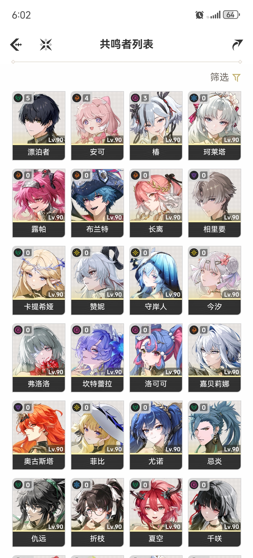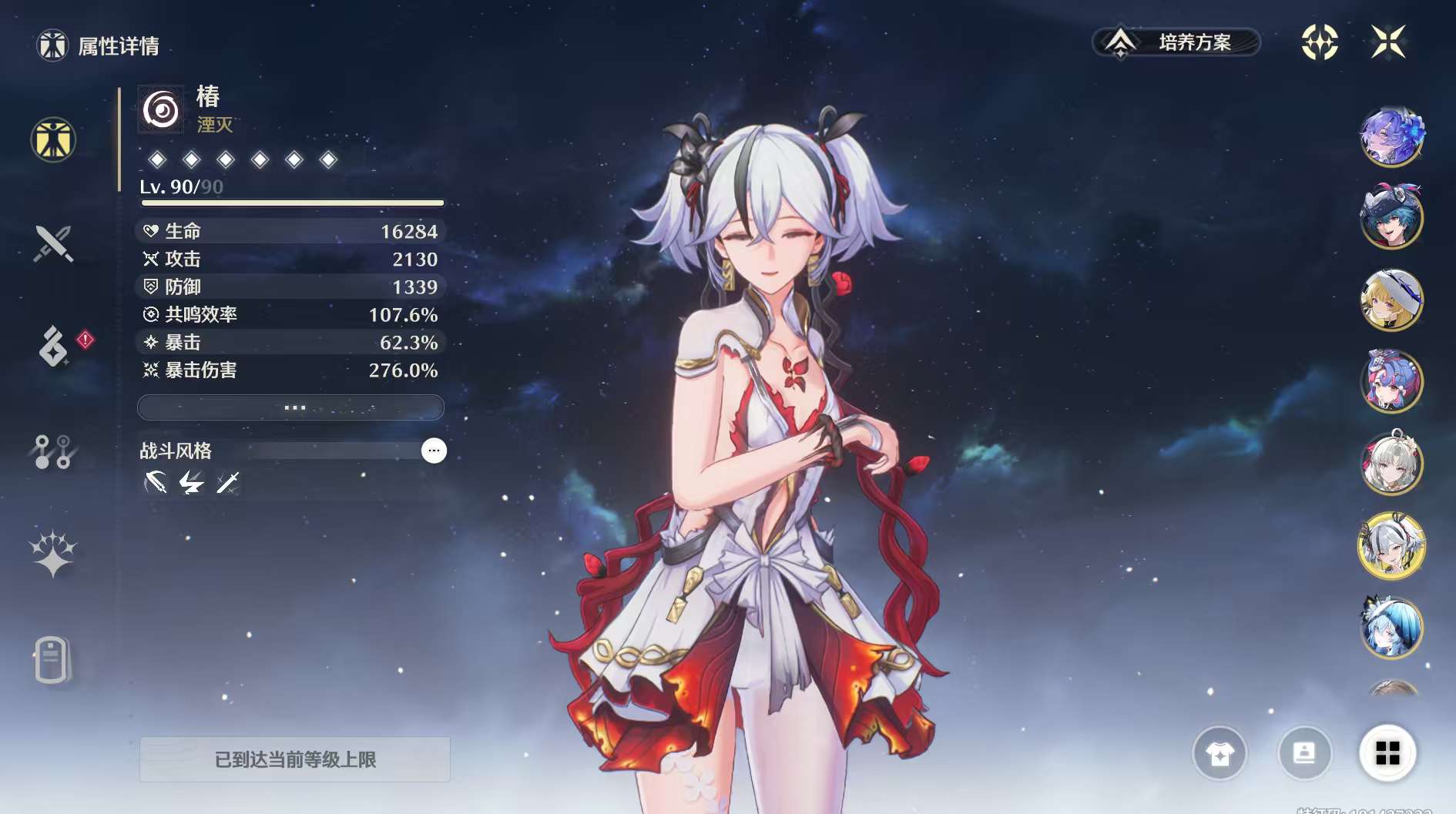 3命椿 所有角色完美练度能过所有 主C都有专武 副C辅助大部分也有 3.0之前探索全满 可小刀急卖