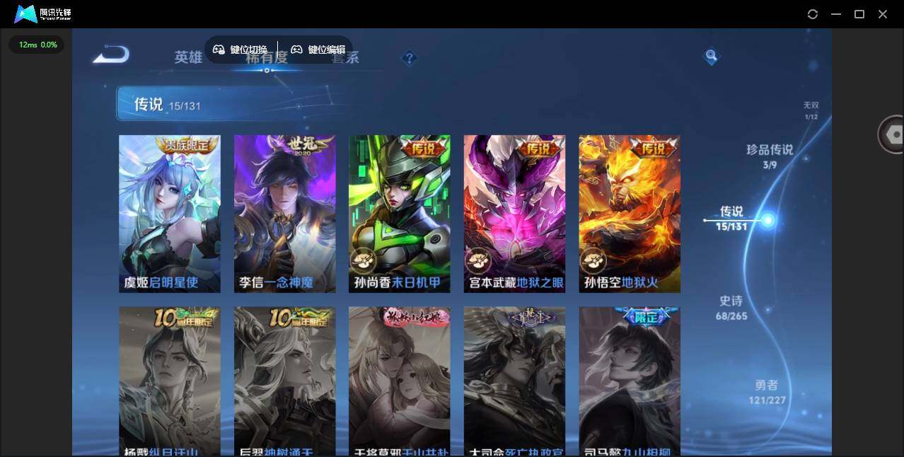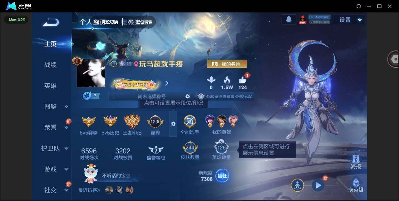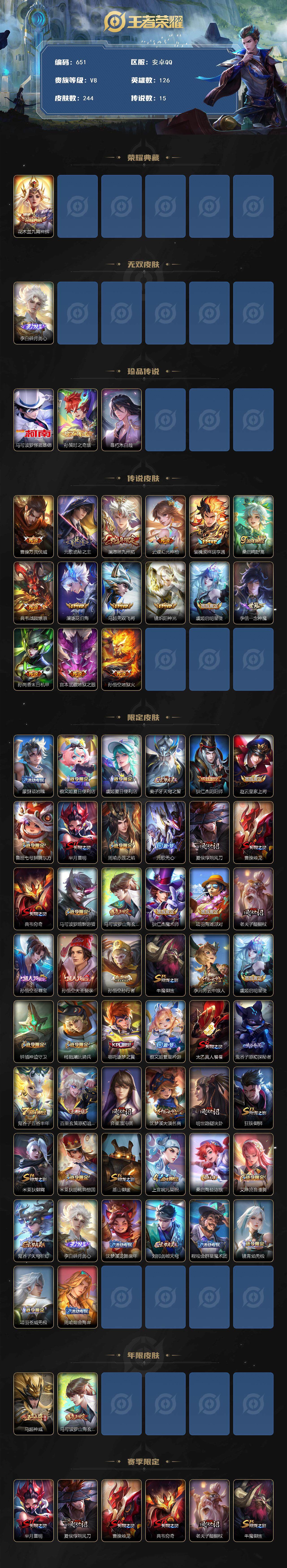 1847608 安卓Q-V8-最强王者段位-126英雄-244皮肤-1典藏皮肤-1无双-3珍品传说-15传说-68史诗