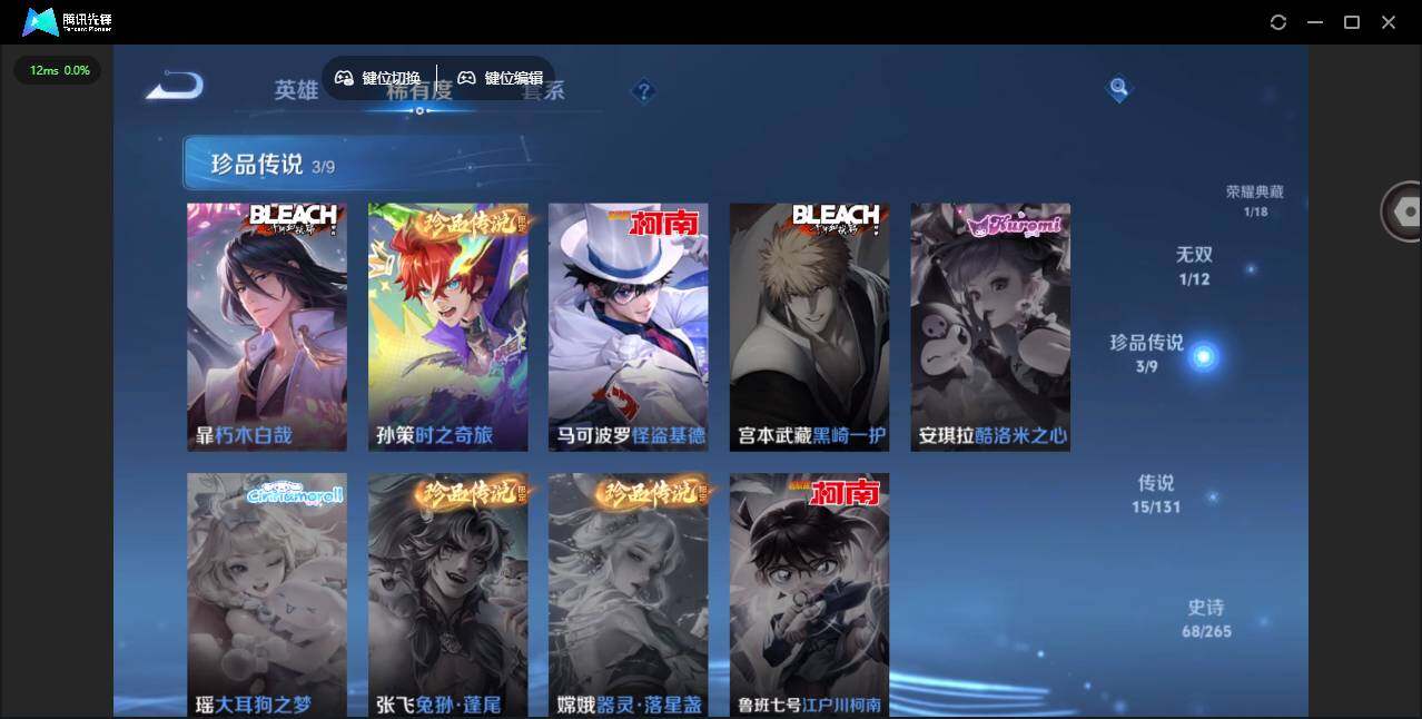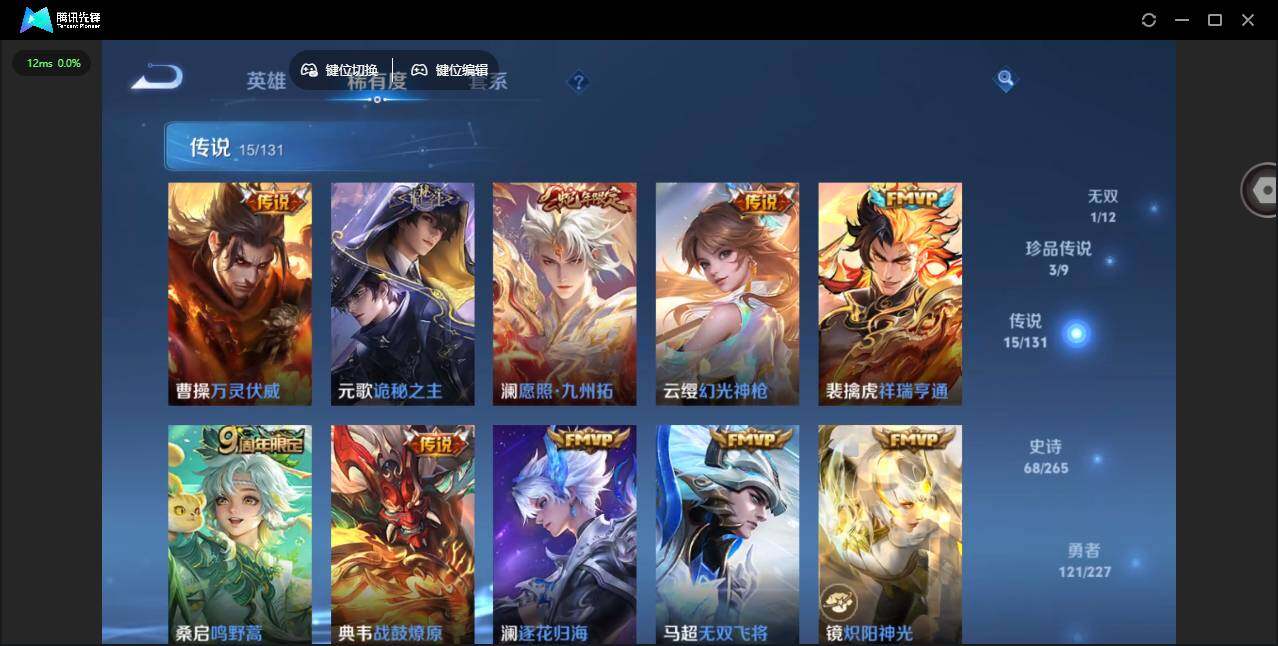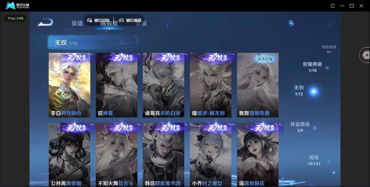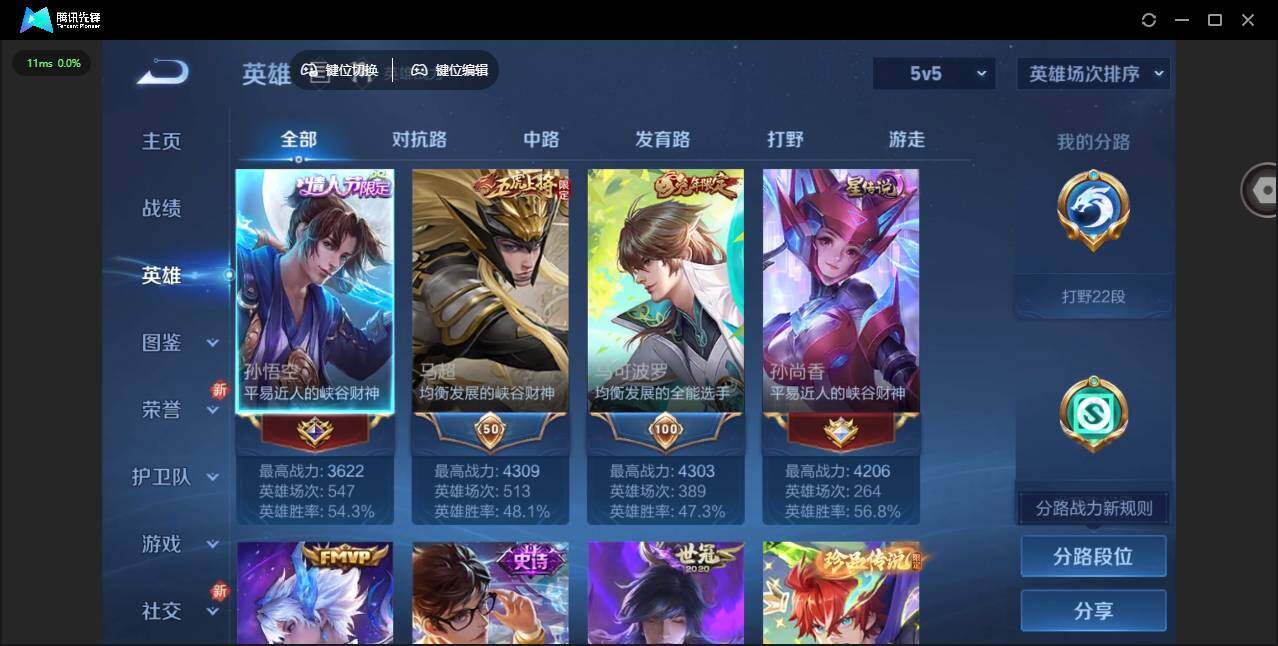 1847608 安卓Q-V8-最强王者段位-126英雄-244皮肤-1典藏皮肤-1无双-3珍品传说-15传说-68史诗