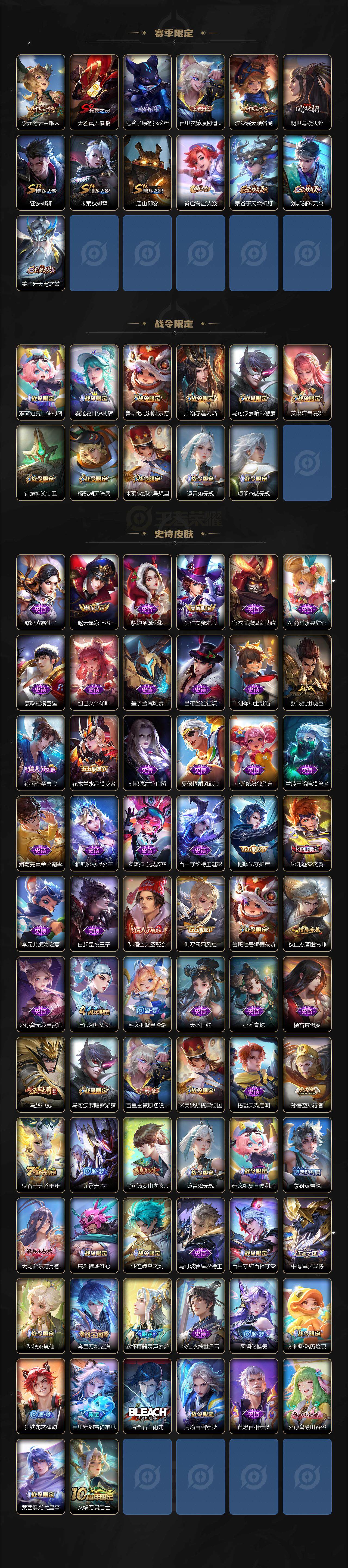 【传说皮肤】:曹操万灵伏威,元歌诡秘之主,澜愿照九州拓,云缨幻光神枪,裴擒虎祥瑞亨通,