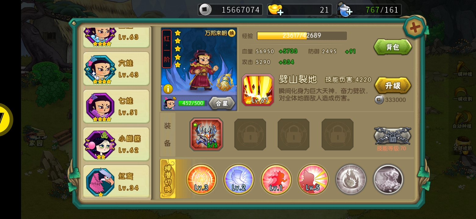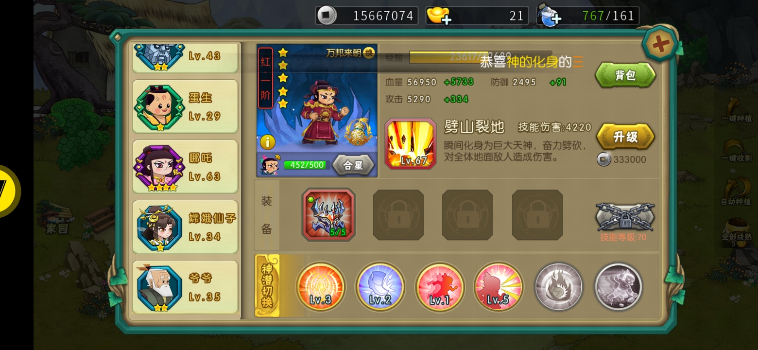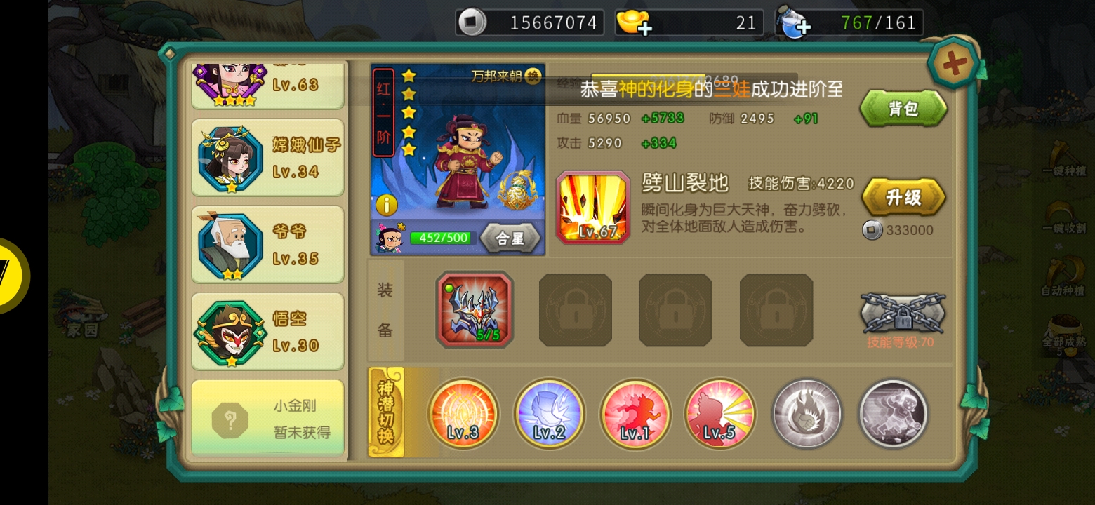 一个70多级的小号,好几个紫4一个红,有六臂哪吒