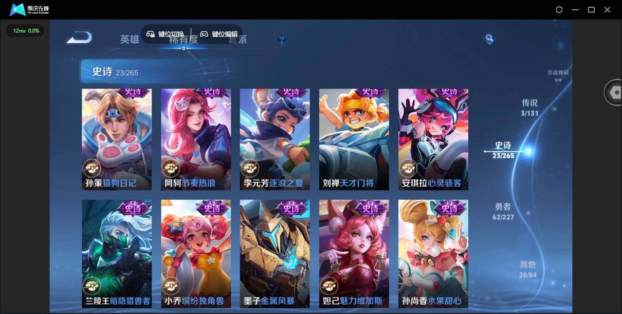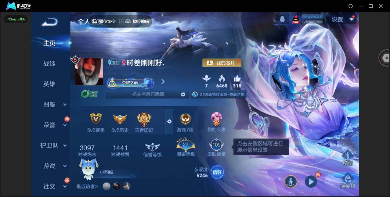 营地账号:/1853047 安卓Q-V5-至尊星耀V段位-125英雄-109皮肤-1典藏皮肤-3传说-23史诗
