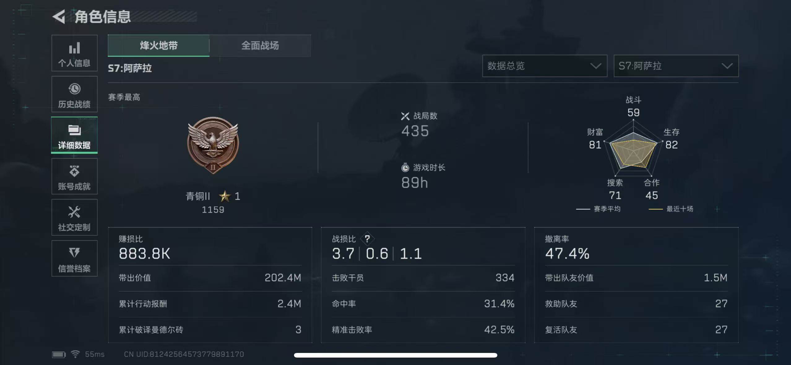 【SJ689】77m总资产-24428k哈伏币-60烽火等级-青铜-21战场等