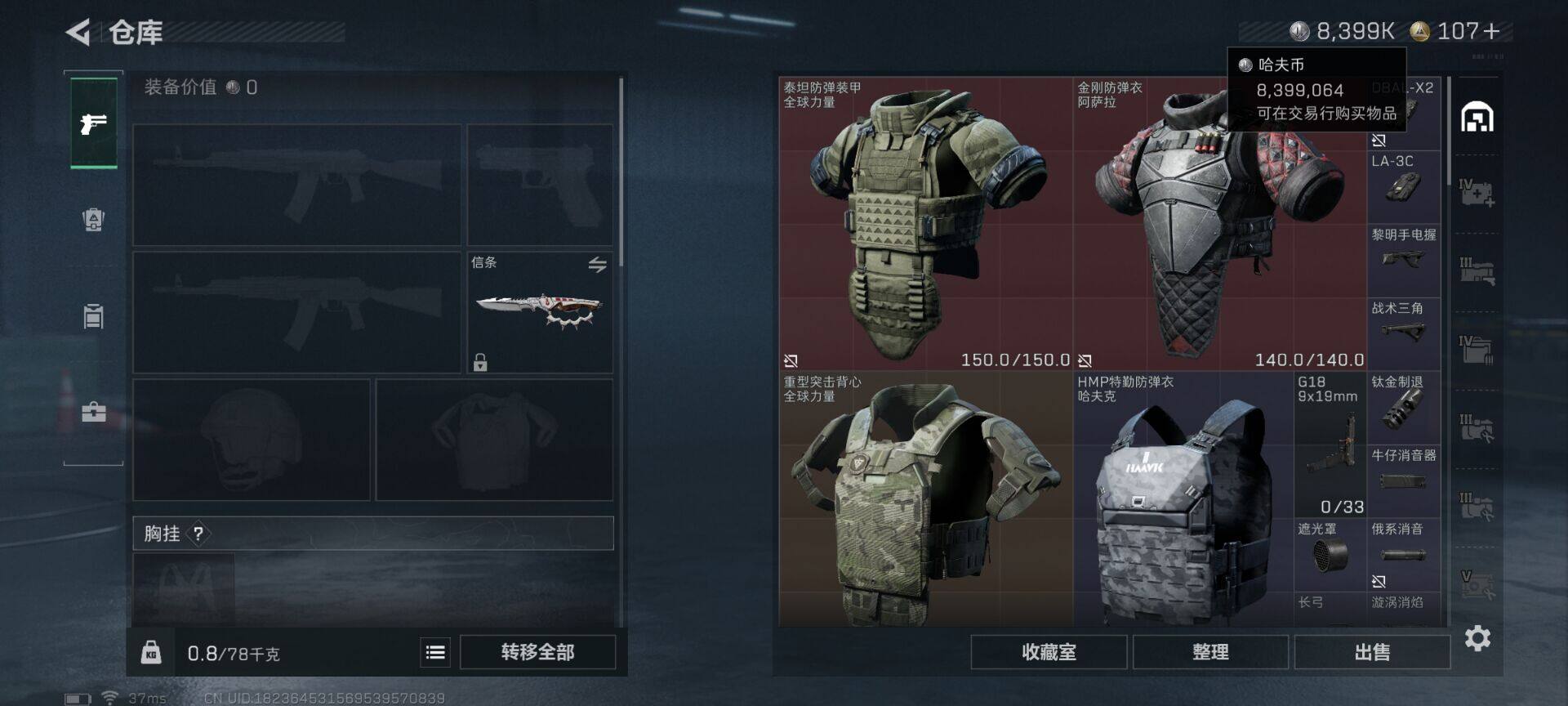 总资产(M):199M/哈夫币(K):8399K/哈夫币(K):8399K/全面战场等级:50_段位