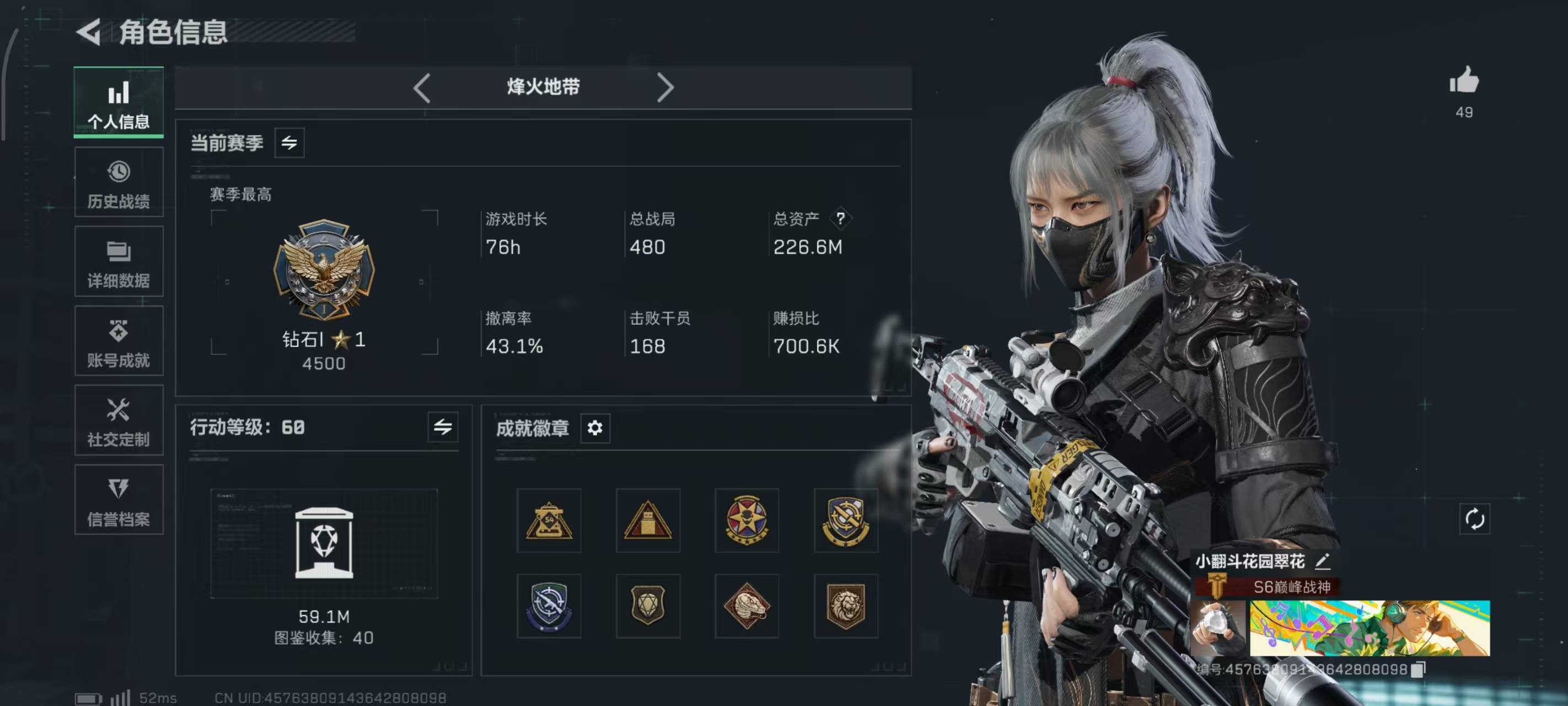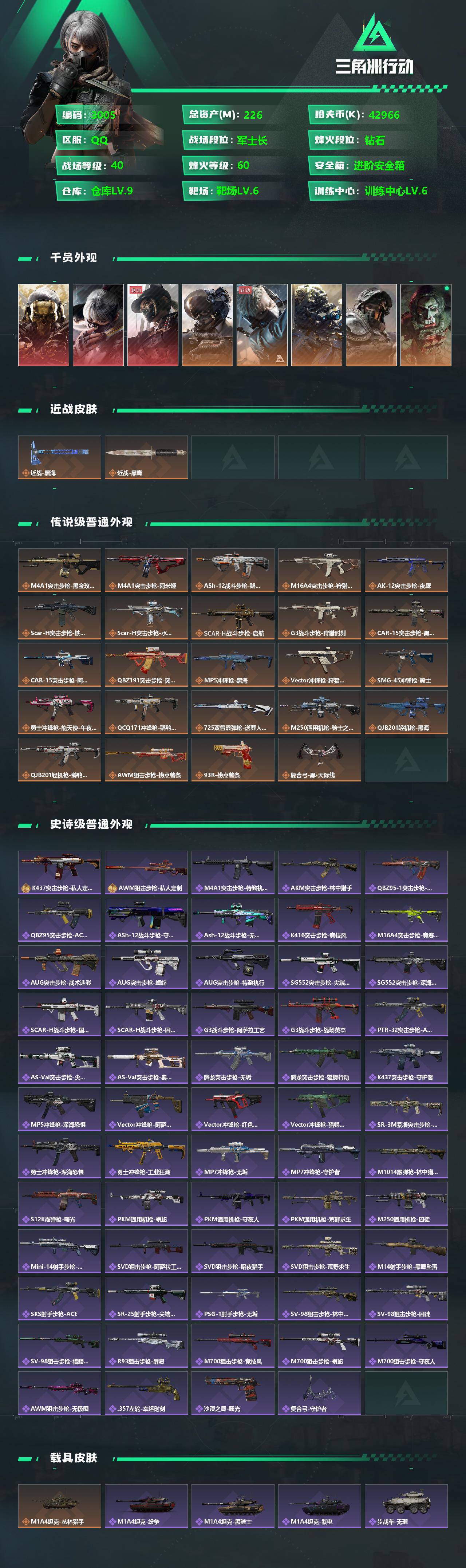 总资产226.6M 哈夫币42966k 3红皮 5金皮 蚀金玫瑰 水墨云图 黑天际线 壮志凌云 送葬