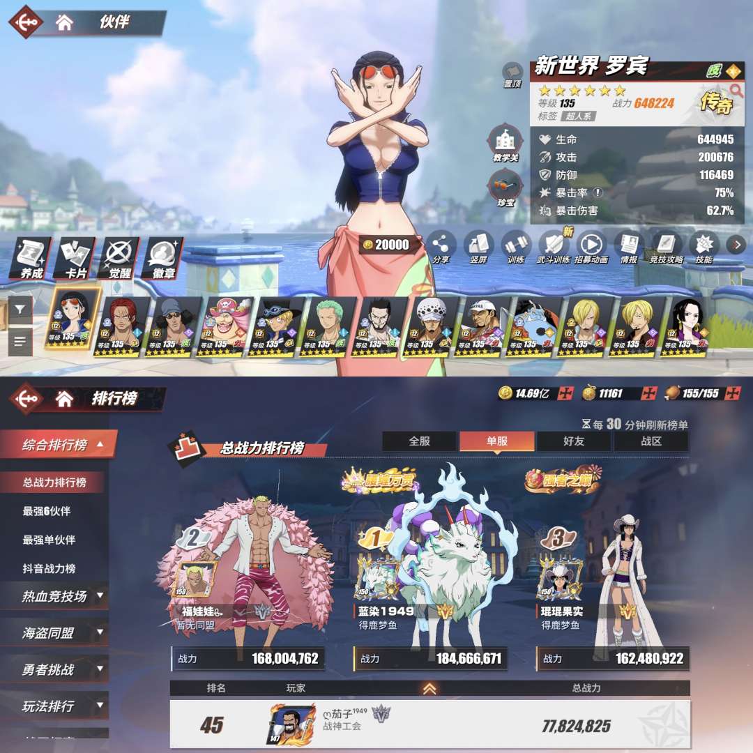 7780万战力。青年卡普75传奇4典藏10强者。4神赐39艘船。1万1金果 10强者抽 47高级