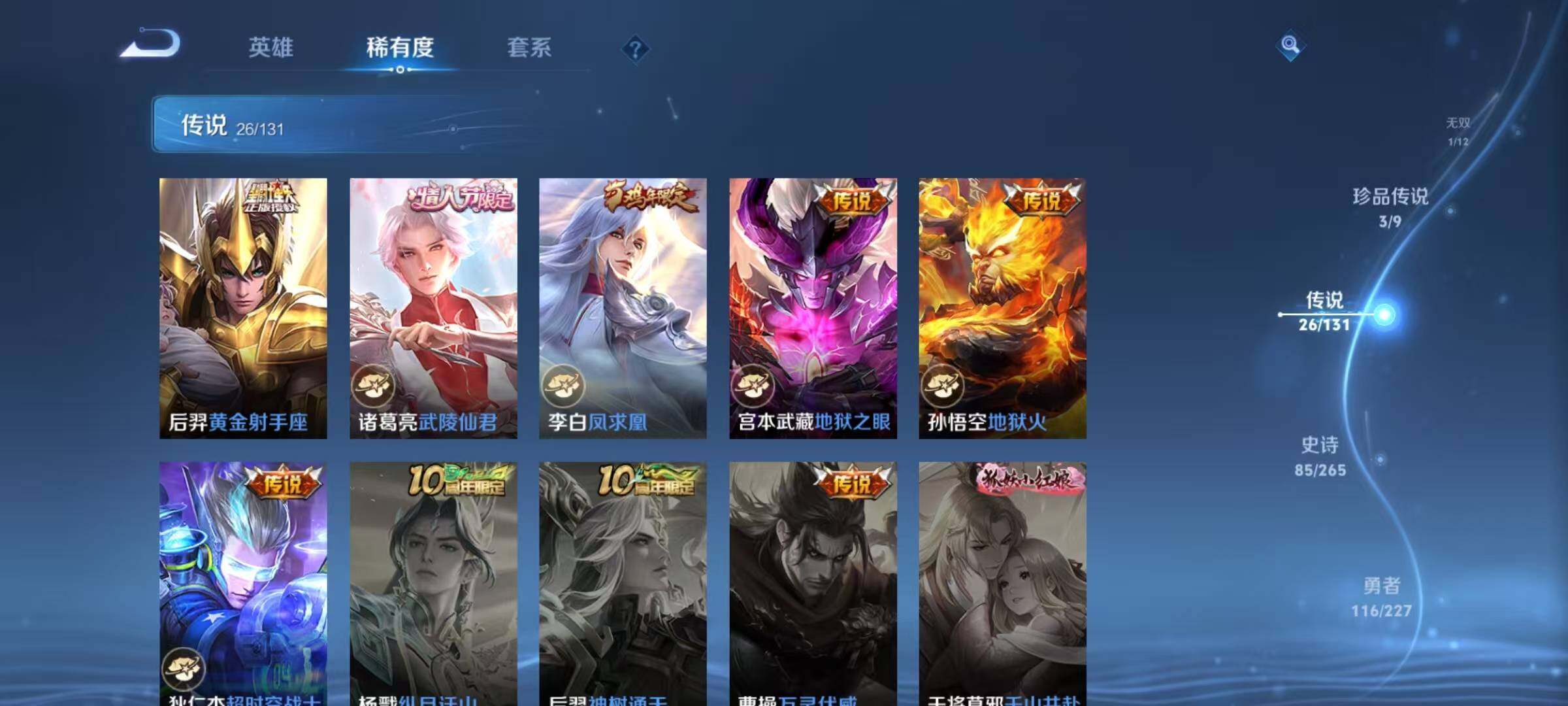 安卓QQ 皮肤305 英雄127 典藏1 无双1 珍品传说2 传说26 其他皮肤118 尊贵铂金-V8-127英雄-305皮肤-1典藏皮肤-1无双-3珍品传说-26传说-85史