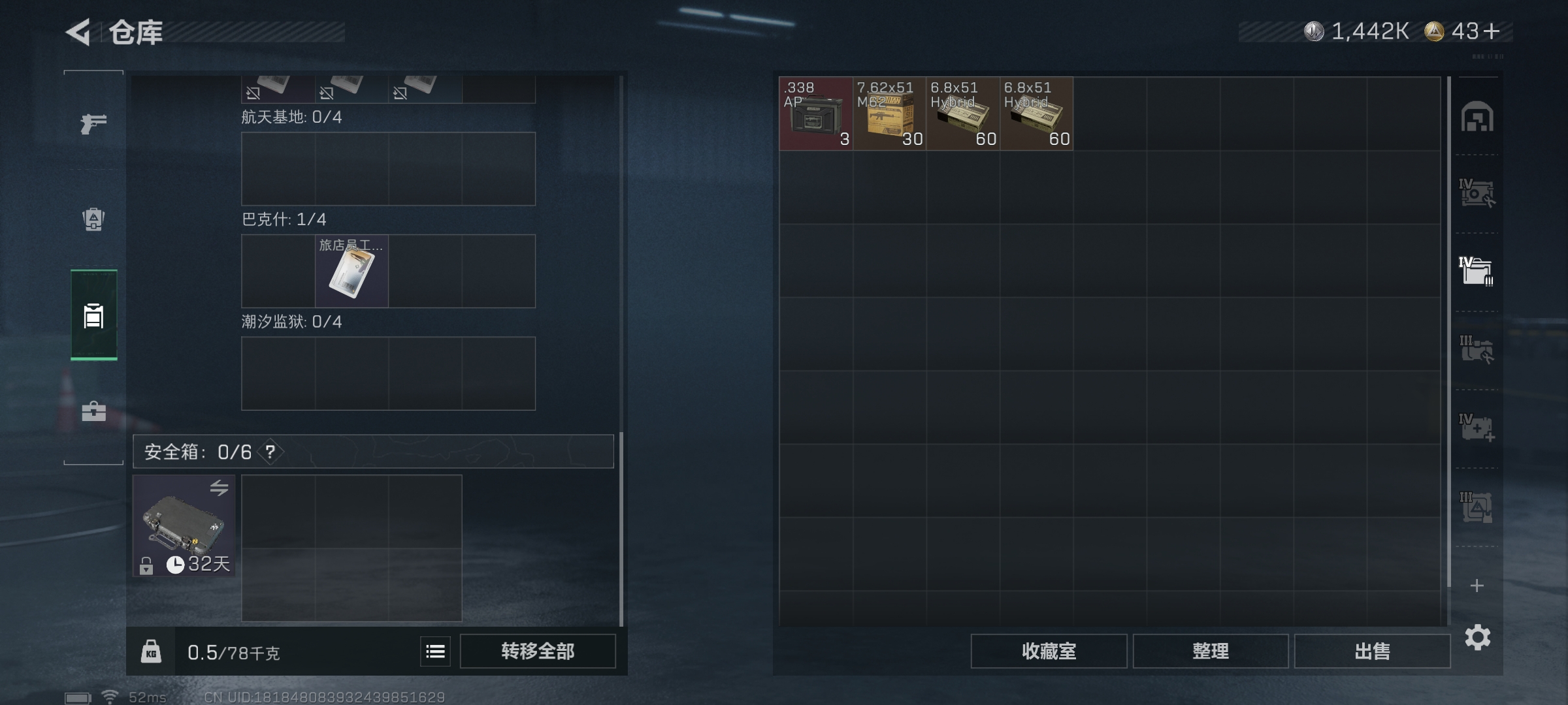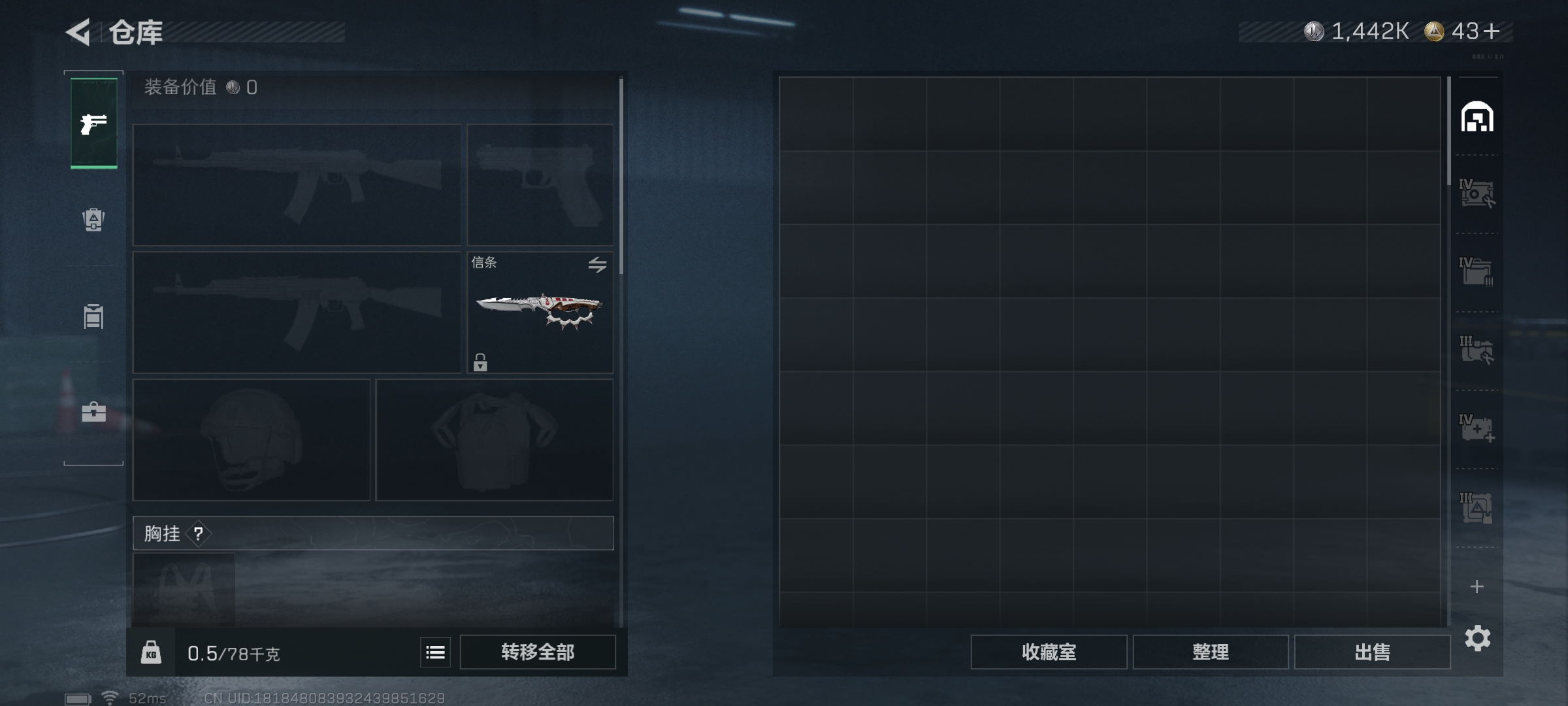 露娜绝版红皮♥送葬人♥信条刀皮♥手册已开六格保险♥七级仓库六级体力♥