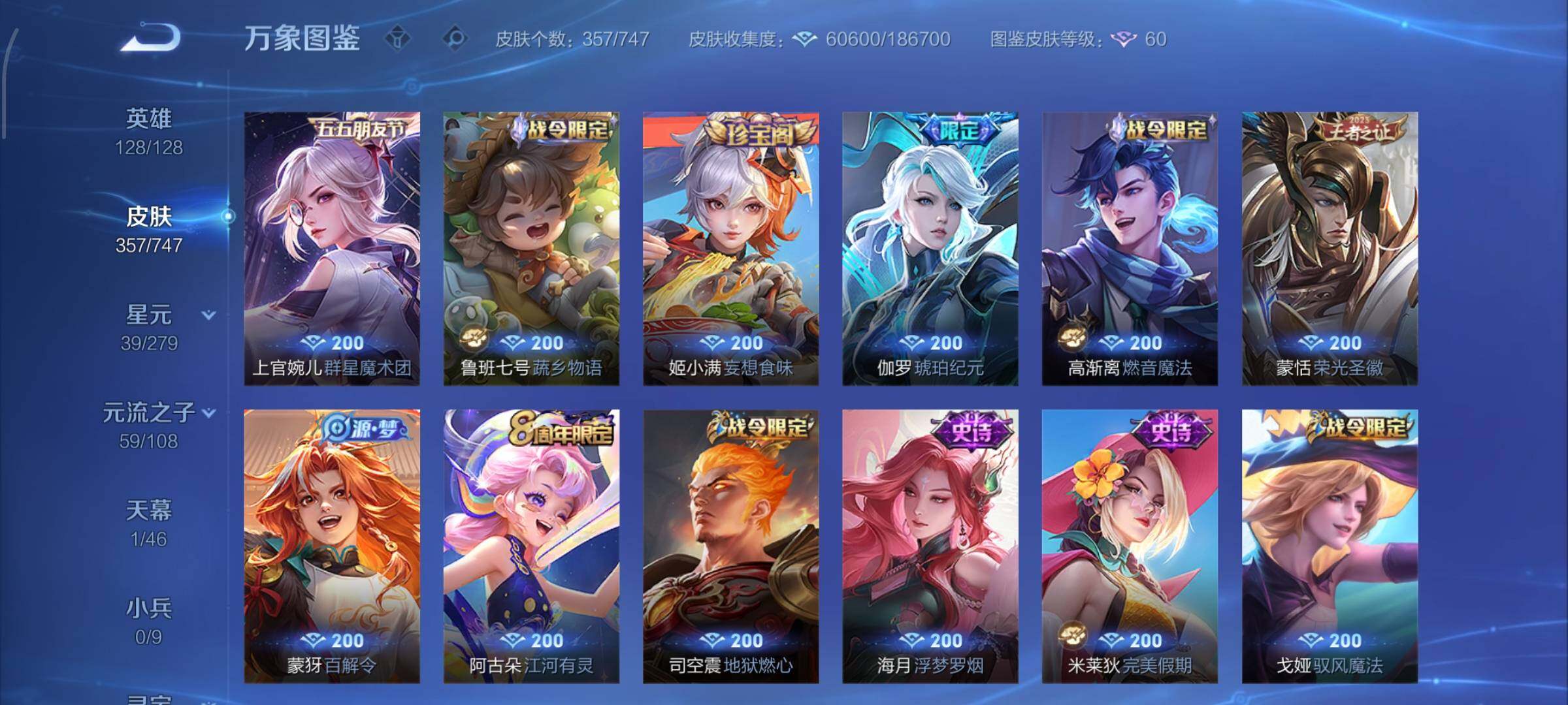 【精氪v9多限定·金标万战武则天·金标金蝉·中路40段·全皮武则天·全皮海月·基德·兔狲蓬尾·寅虎焰心·幻海之心·铃舟系梦天幕·祈雪灵祝·武圣·绯月行·星之鸣奏·愿照千秋盛·愿照岁时盈·牧神诗旅·落雪白狼·貂蝉曦玄引·乘龙淬吴钩·浮生妄·山海琳琅生·山海苍雷引·枫霜尽·寅虎瑞焰·异界灵契·时雨天司·13年限·可二次】YXw9178-安卓Q-128英雄-357皮肤-