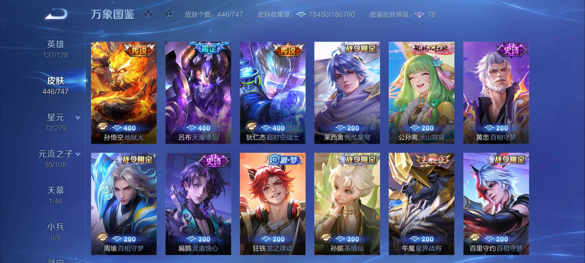 /【精氪贵族v10·4典藏·59传说·全皮吕布·全皮孙悟空·凤鸣九霄天幕·满龙年限定·14年限·6星传说·大乔时之奇旅·鲁班七号时之奇旅·马超琥珀纪元·铠琥珀纪元·可二次】YXw9181-安卓q区服-127英雄-446皮肤-18王者印记-210铭文-贵族积分26w【贵族10】【4典藏·6星传说·59传说·1天幕·32按键·28个性戳戳】【因赛季更新游戏段付以上号为准!