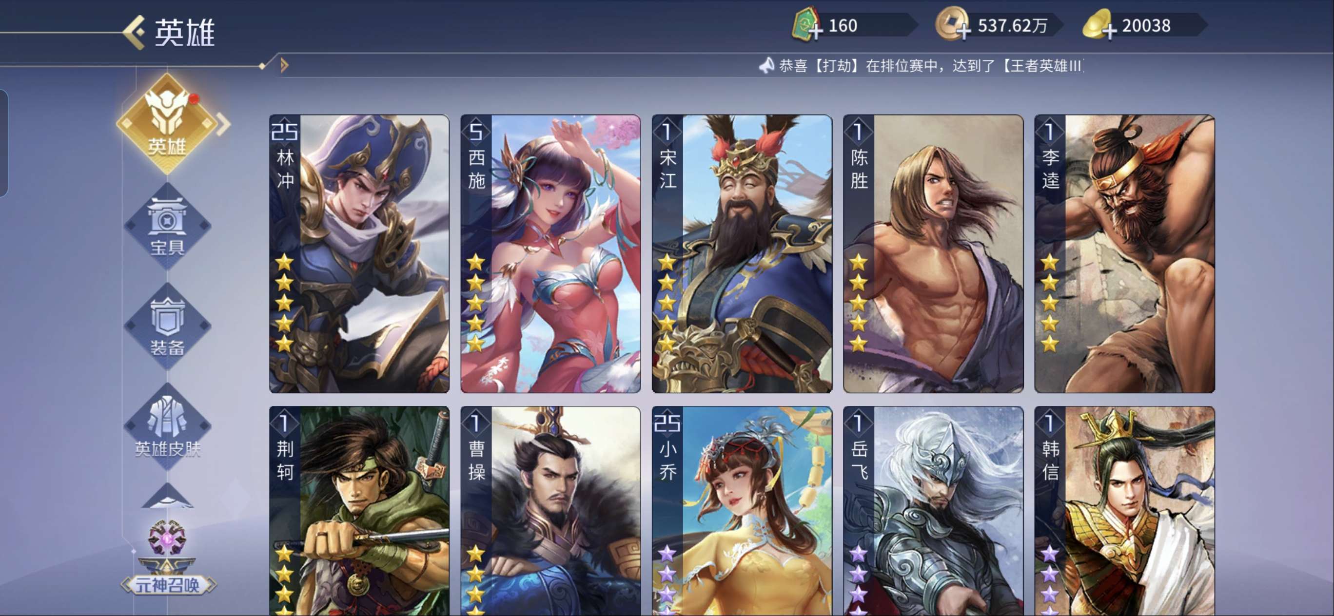 五星武将数量: