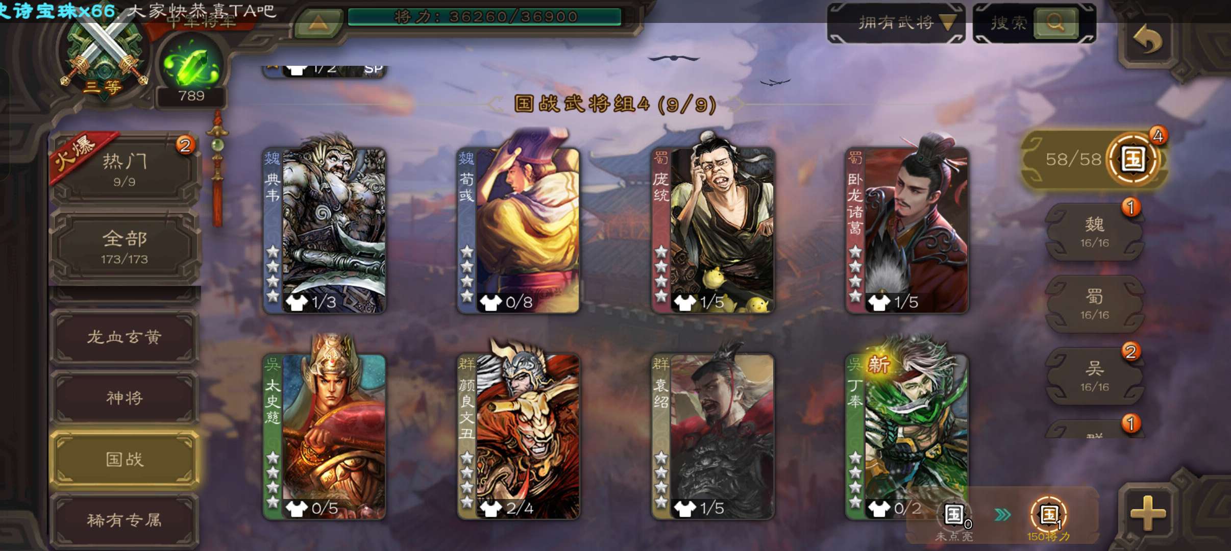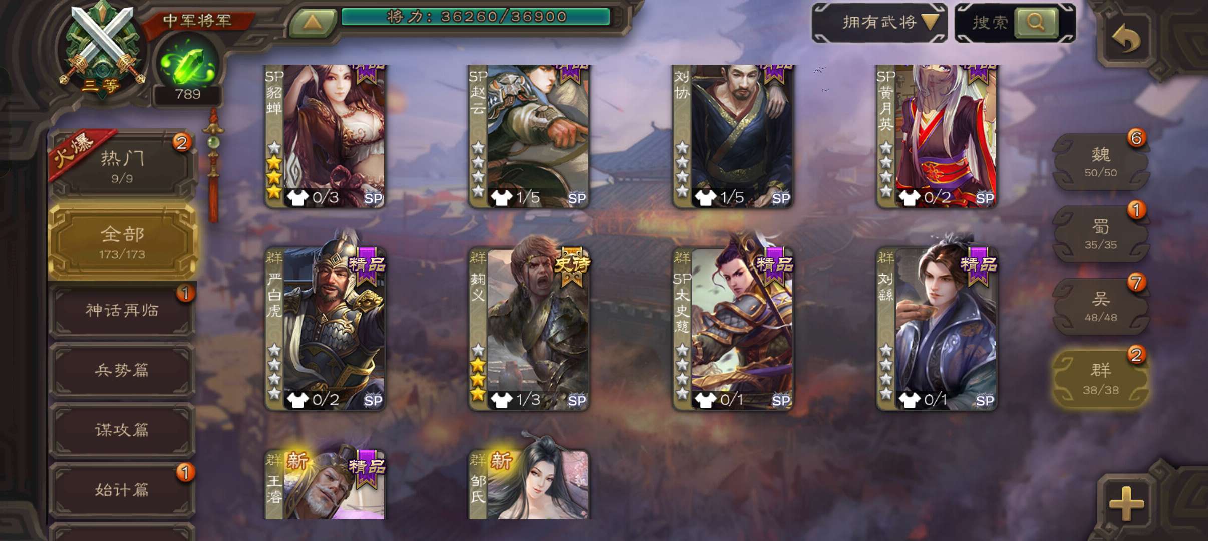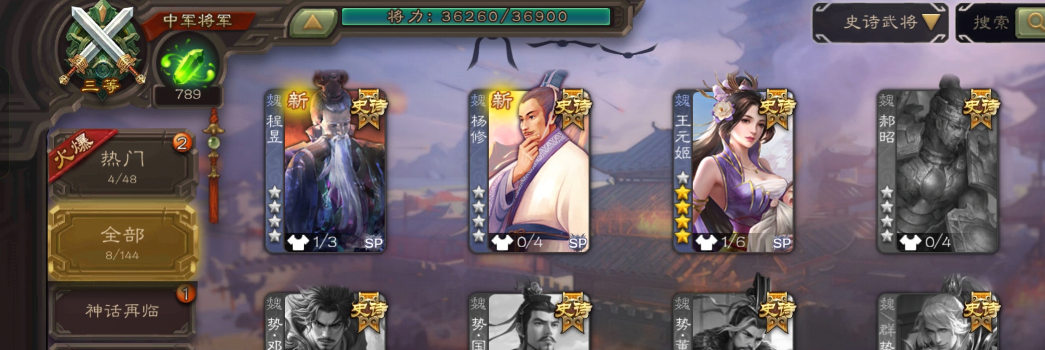 8史诗中军,7万豆,玉龙回廊动王元姬大宝界徐盛动白马神刘备沮授左慈杨修金皮程昱,sp貂蝉s赵云张春华