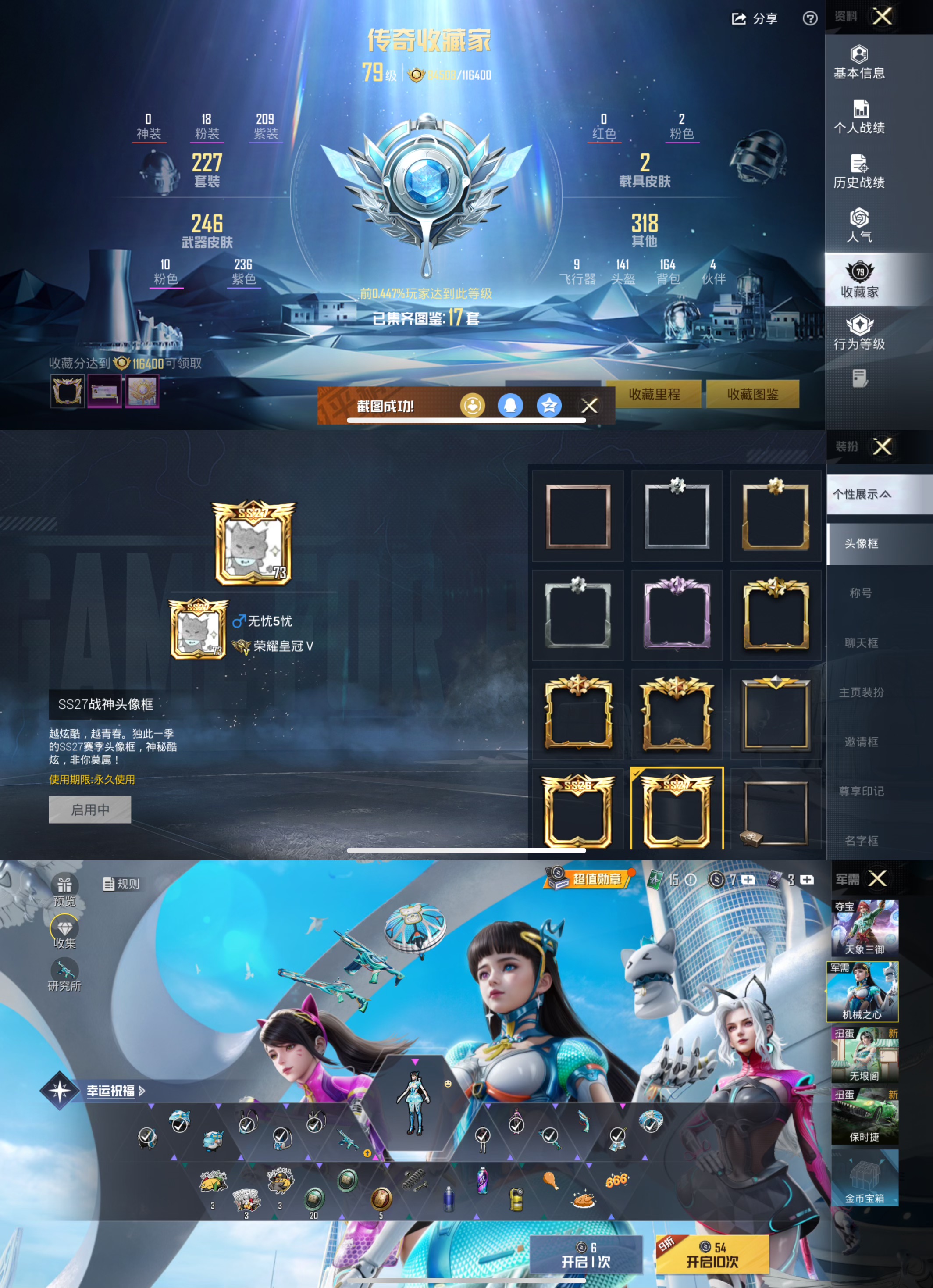 8稀有2载具18粉装9特效枪30热门227套装270枪皮 105765热力值 17印记 历史无敌战神