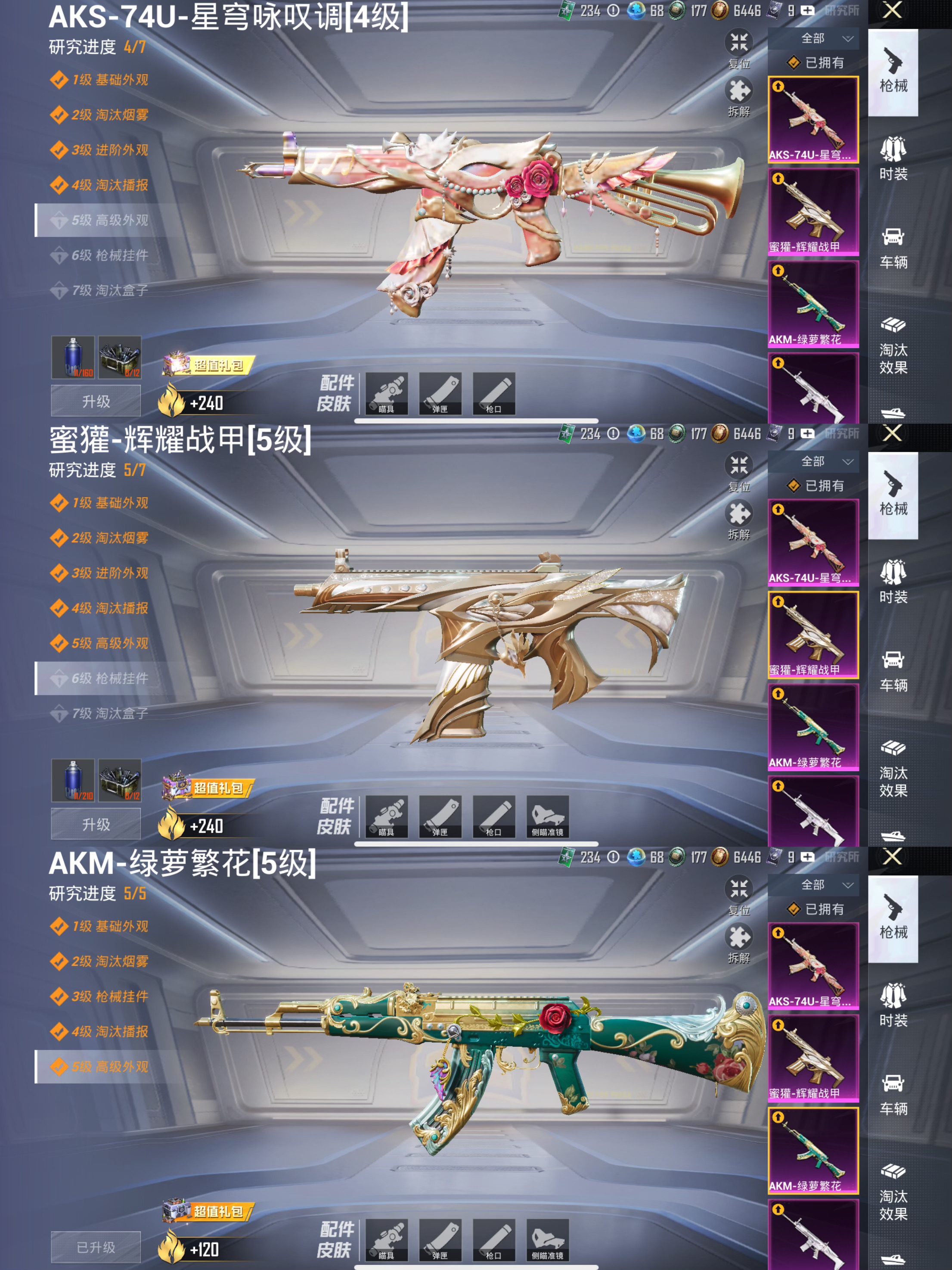 1稀有1载具8粉装6特效枪5热门98套装129枪皮 42290热力值 8印记 历史超级王牌14星