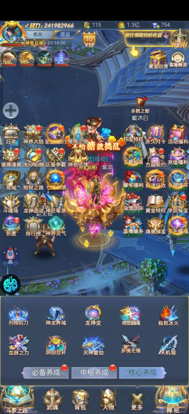打金服新区区三,一套七杀修罗唐门套,两套红骨一套紫,永久月卡,魂师双钻石双补,一套仙草皇套,两排大奖