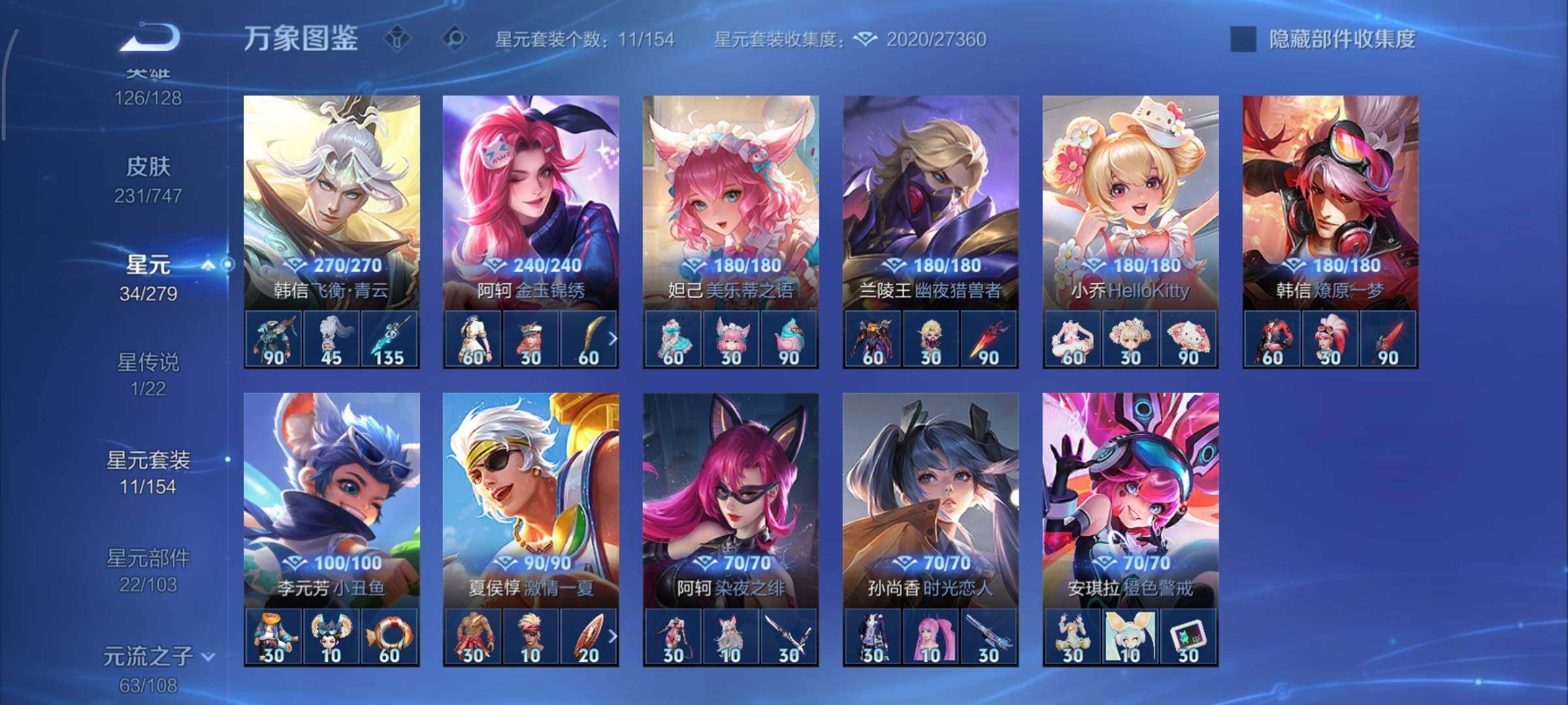 /可换绑【打野50段 金标韩信阿珂孙悟空 韩信典藏 夜礼服假面 多传说限定打野射手号】 24按键,1星传说,1天幕,13王者印记,五级铭文260,可二次KK7073,安卓Q-V8-231皮肤-1典藏皮肤-21传说-83史诗【英雄全皮】:司马懿全皮,孙权全皮,娜可露露全皮,空空儿全皮,影全皮【荣耀典藏】:韩信弑枪猎影【星元皮肤】:刘备时之思念【天幕】:财神纳福天幕【传