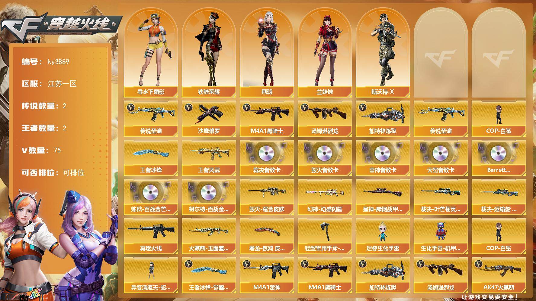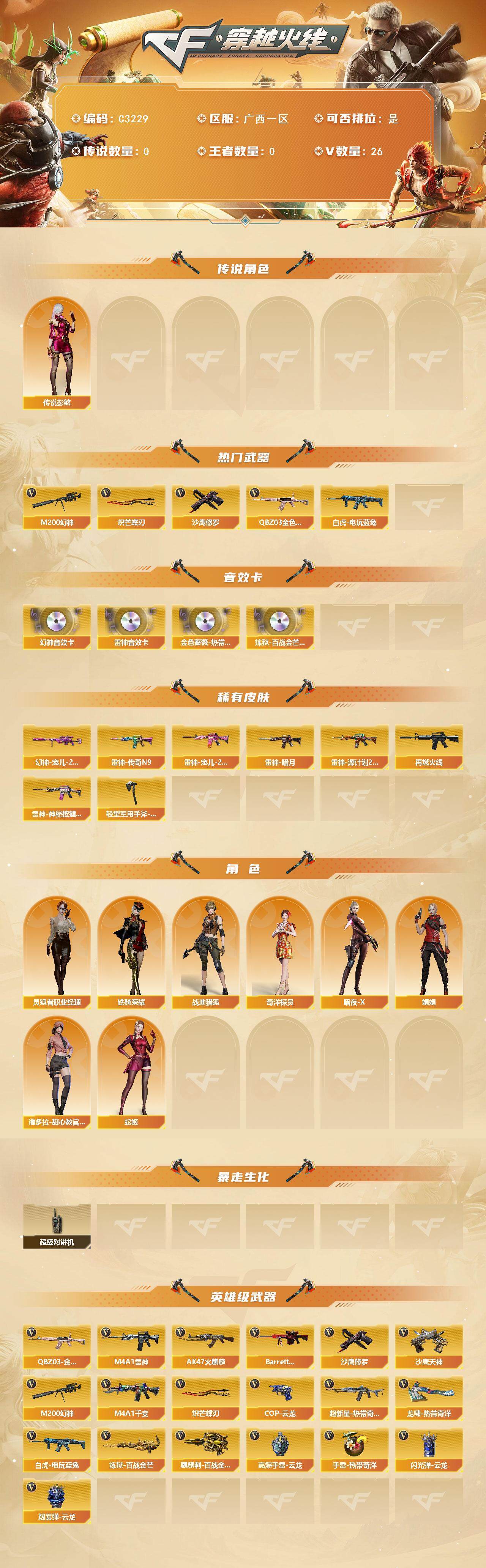 广西一区-26V-0王者-0炫金【传说角色】:传说影煞【热门武器】:QBZ