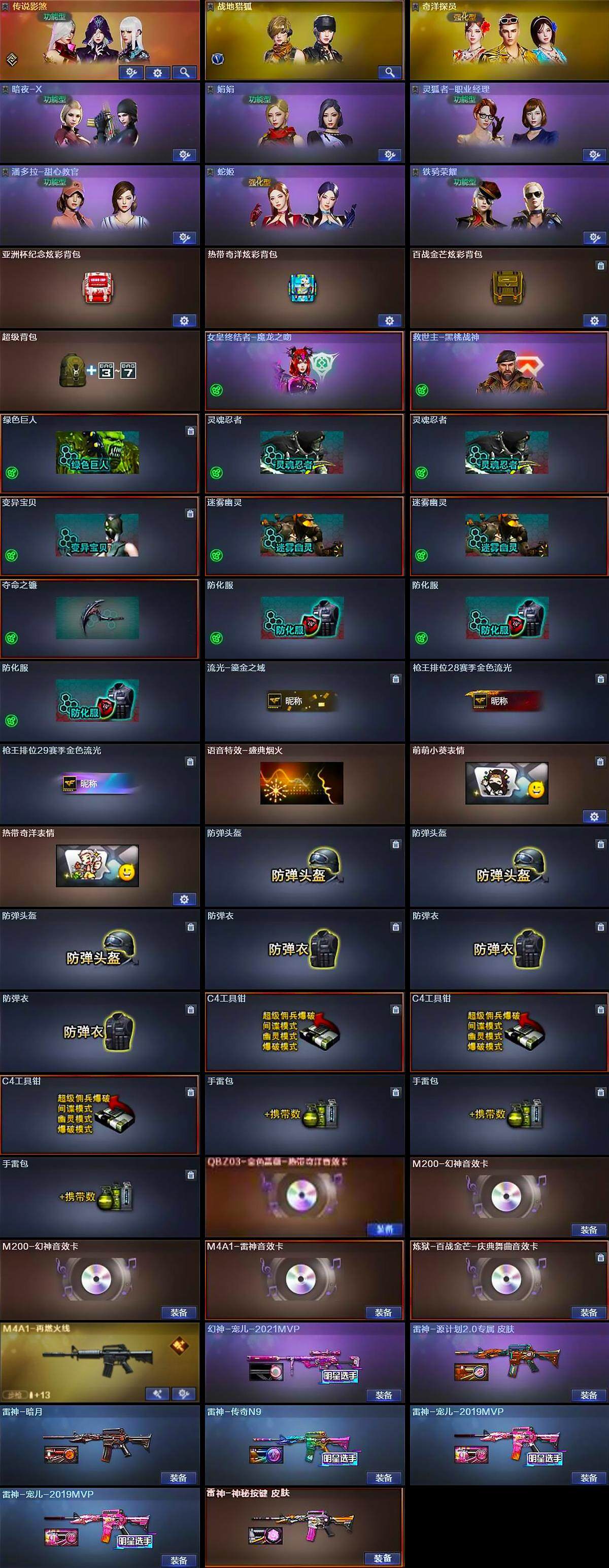 【音效卡】:QBZ03-金色蔷薇-热带奇洋音效卡,M200-幻神音效卡*2,M4A1-雷神音效卡,炼狱-百战金芒-庆典舞曲音效卡