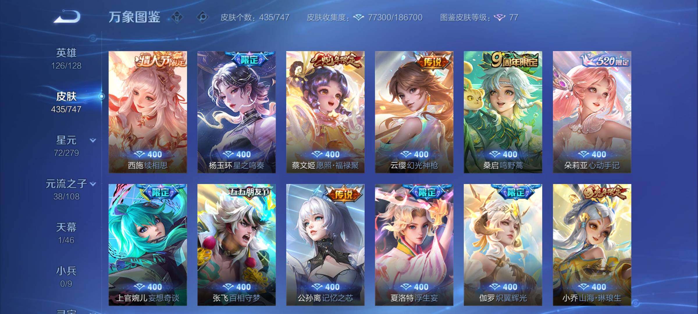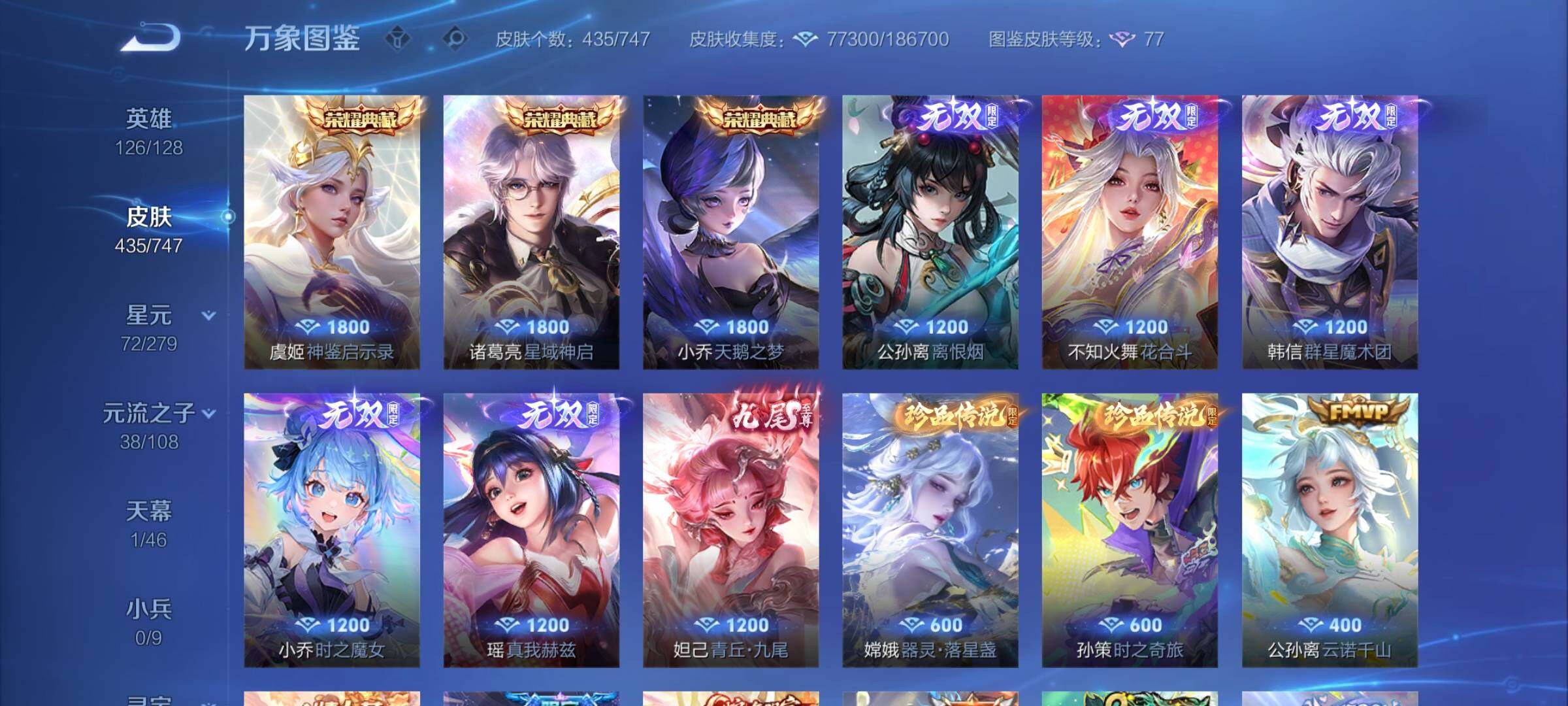 可换绑【V9精品号 公孙离全皮 西施全皮 3典藏 6无双 2珍品 11金标 发