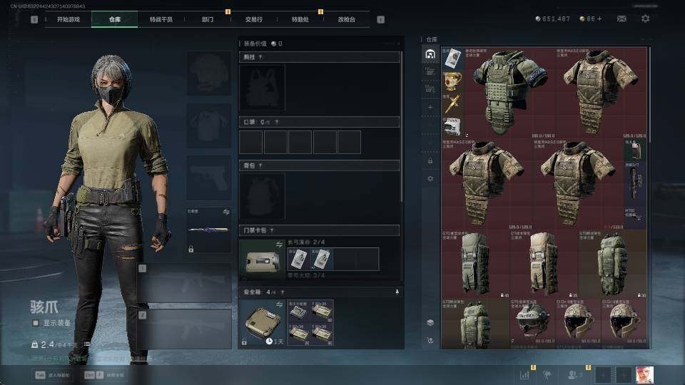 总资产(M):65M/哈夫币(K):651K/全面战场等级:35_段位:上等兵/烽火地带等级:60_段位:黑鹰/